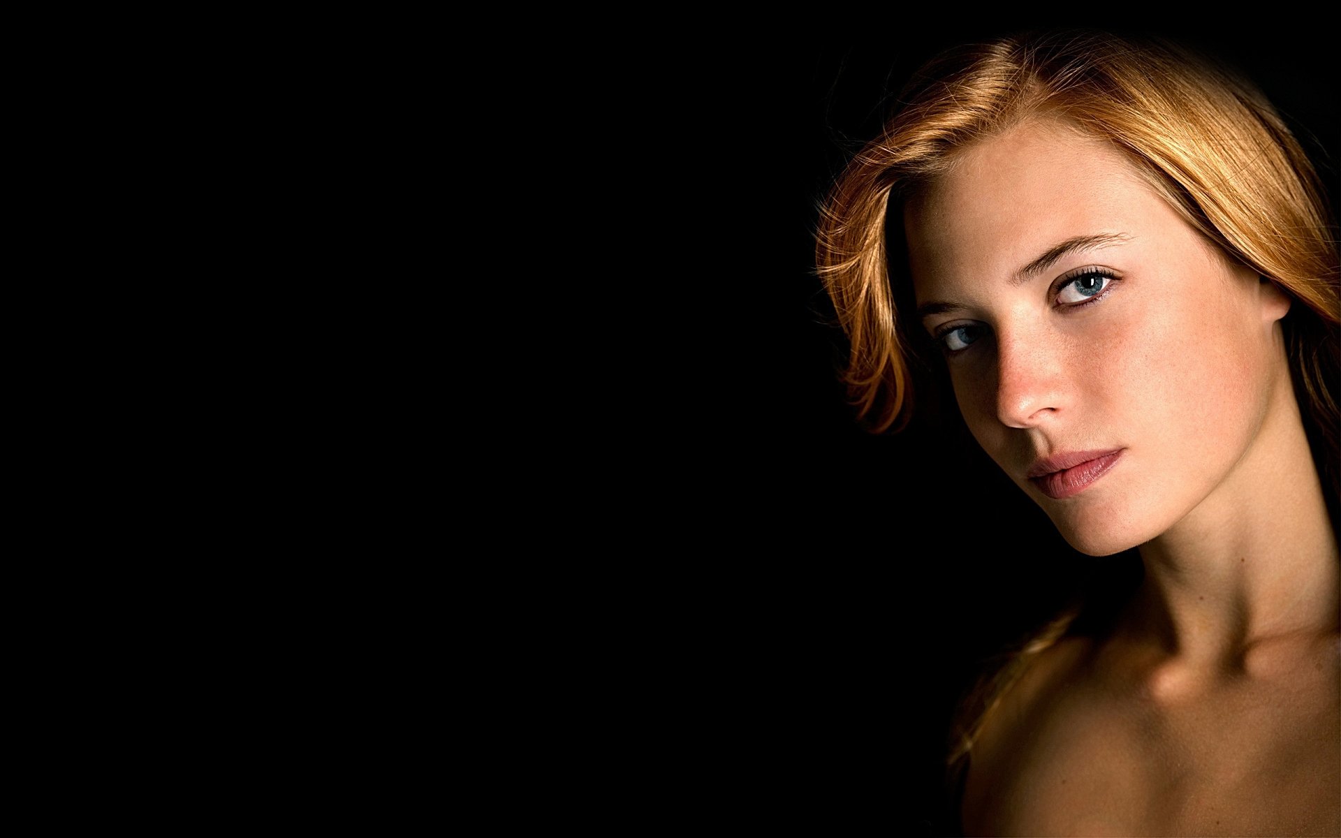 Mädchen mit blonden Haaren auf schwarzem Hintergrund