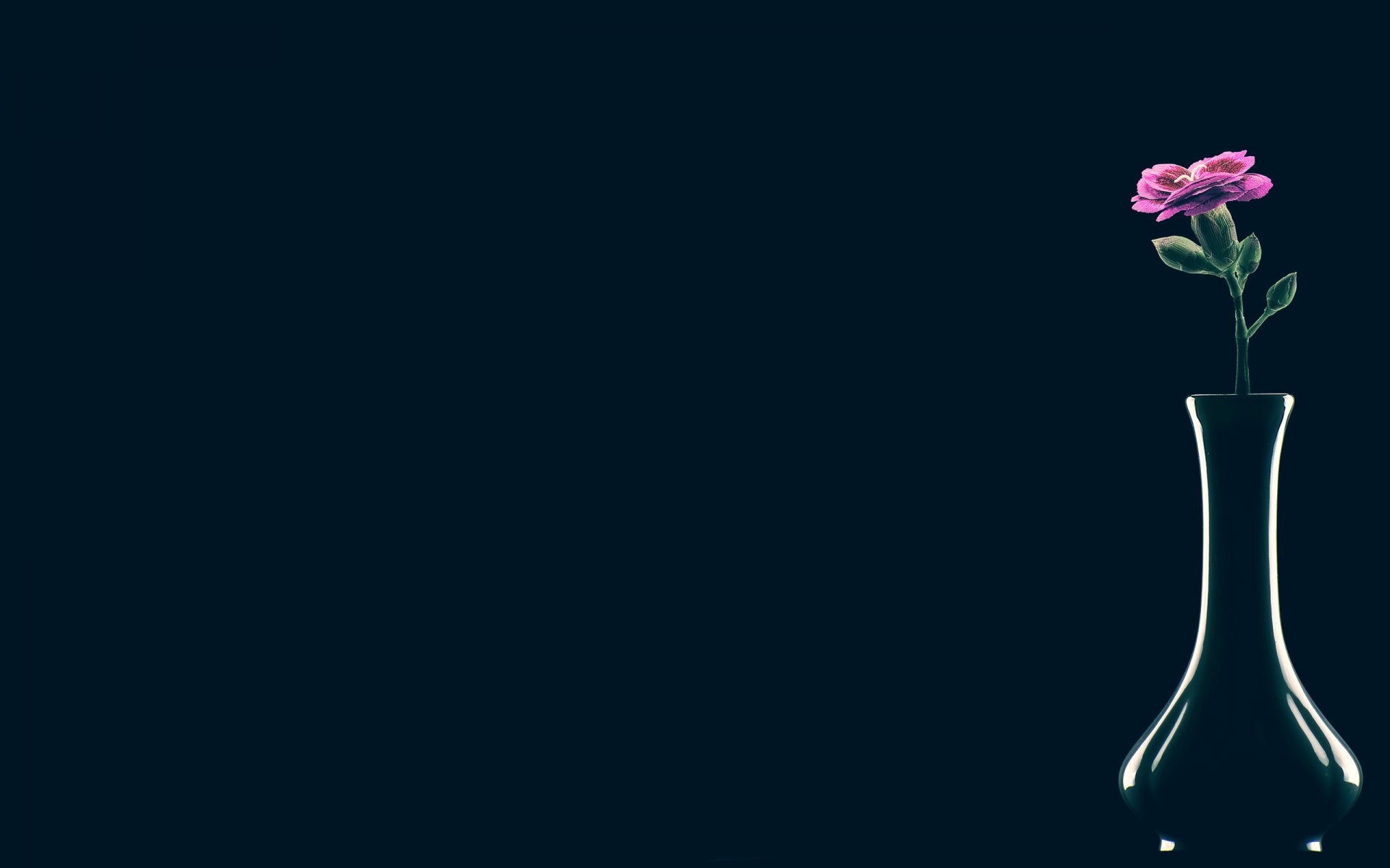 Rosa Blume in einer Vase auf schwarzem Hintergrund