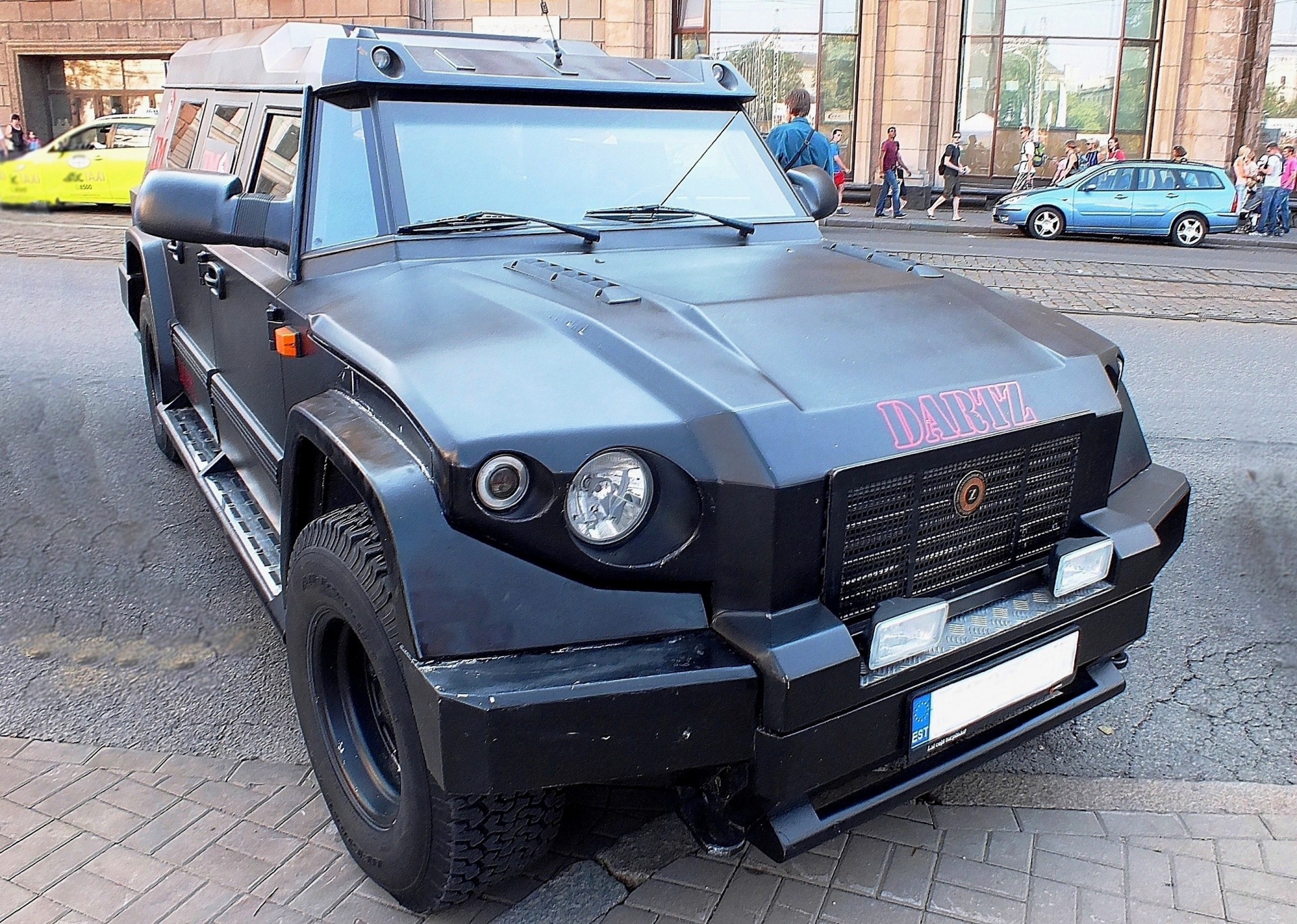 Ein gelbes und schwarzes Auto steht vor dem Haus