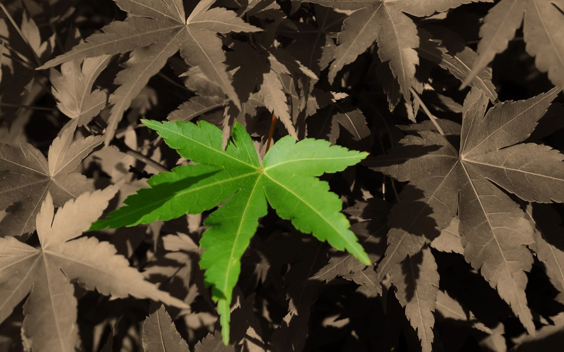 Helles Blatt in der grauen Welt der Straßen der Stadt