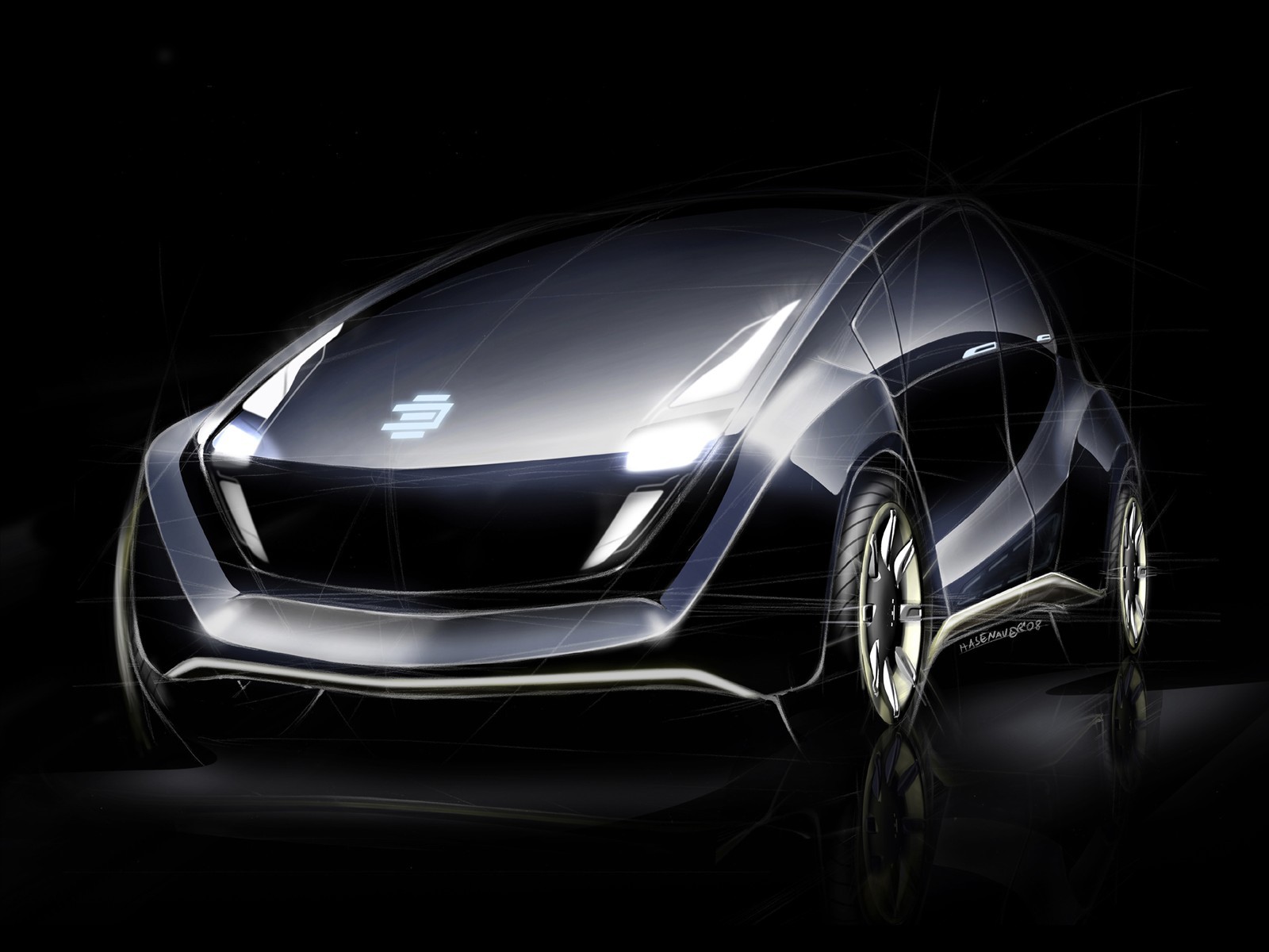 Ein minimalistisches schwarzes Auto mit einer ungewöhnlichen Front