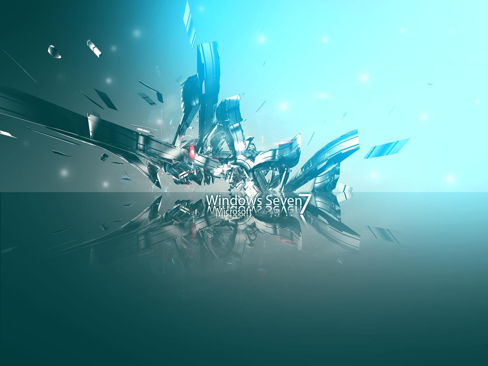 Windows-Logo und große Zahl sieben auf schwarzem Hintergrund