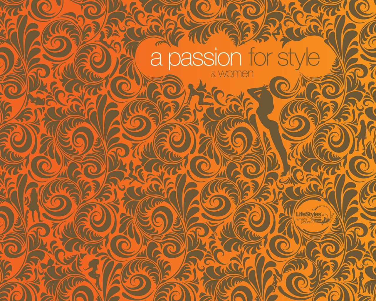 Volksmuster: silberne Elemente auf orangefarbenem Hintergrund