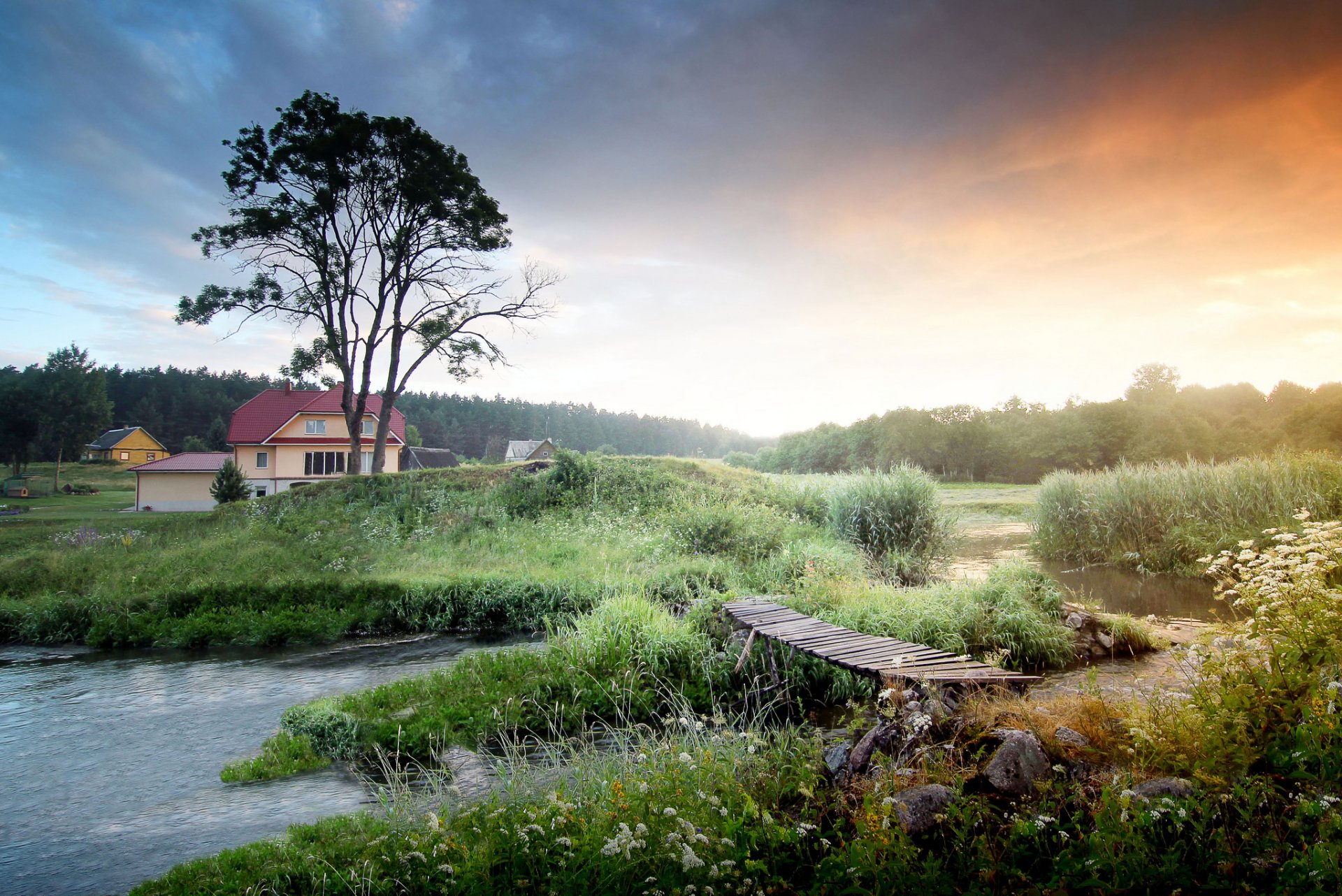 Mühlen auf dem sonnenaufgang. ein fluss in hollandMühlen auf dem Sonnenaufgang. Ein Fluss in Holland