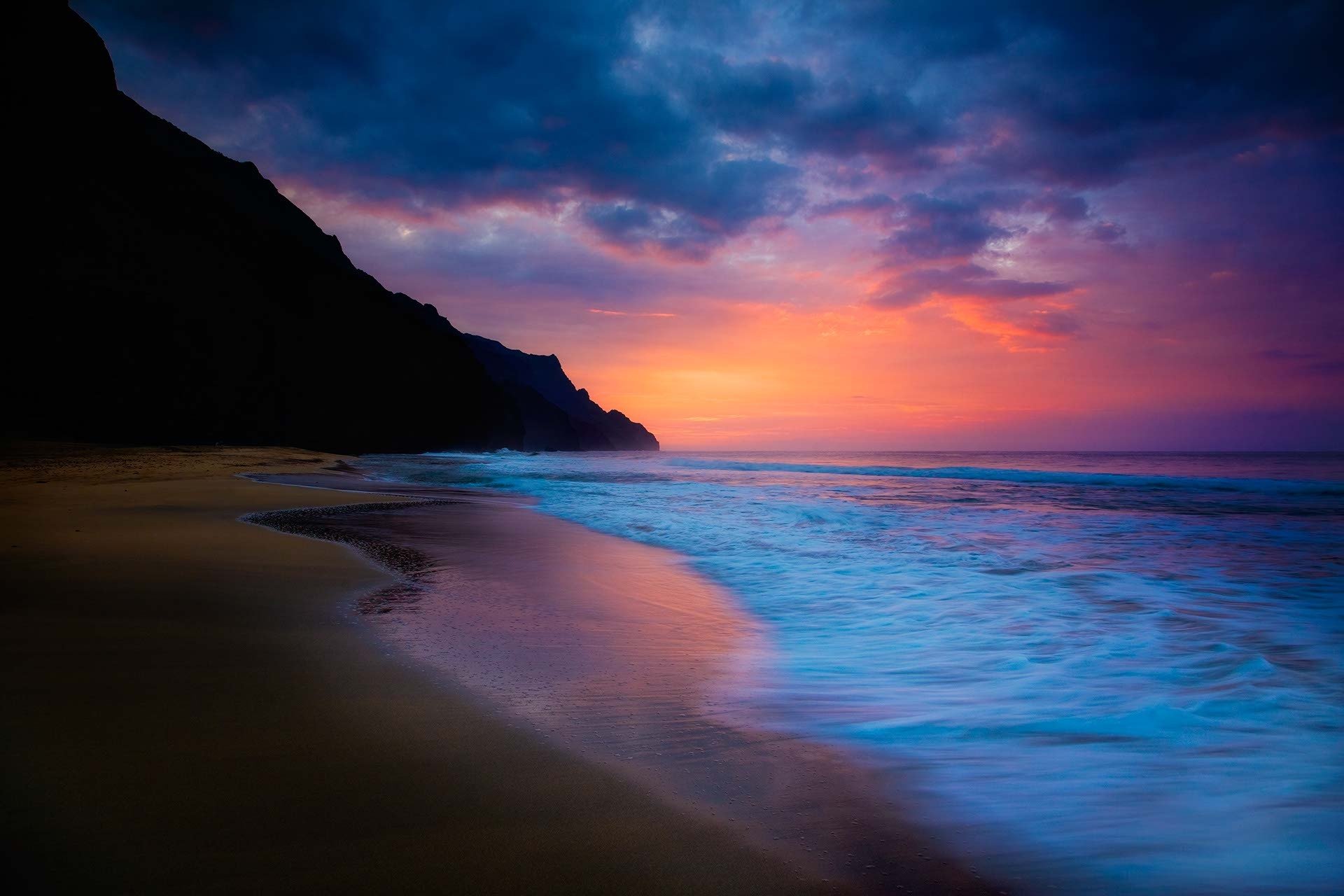 Goldener sonnenuntergang über dem meer im dschungelGoldener Sonnenuntergang über dem Meer im Dschungel
