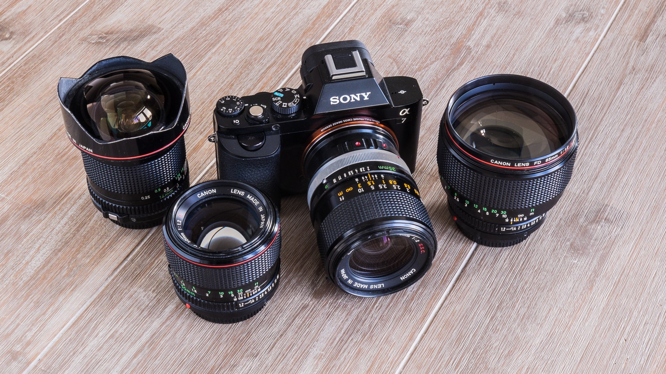 Die Sony-Kamera und die Objektive dazu