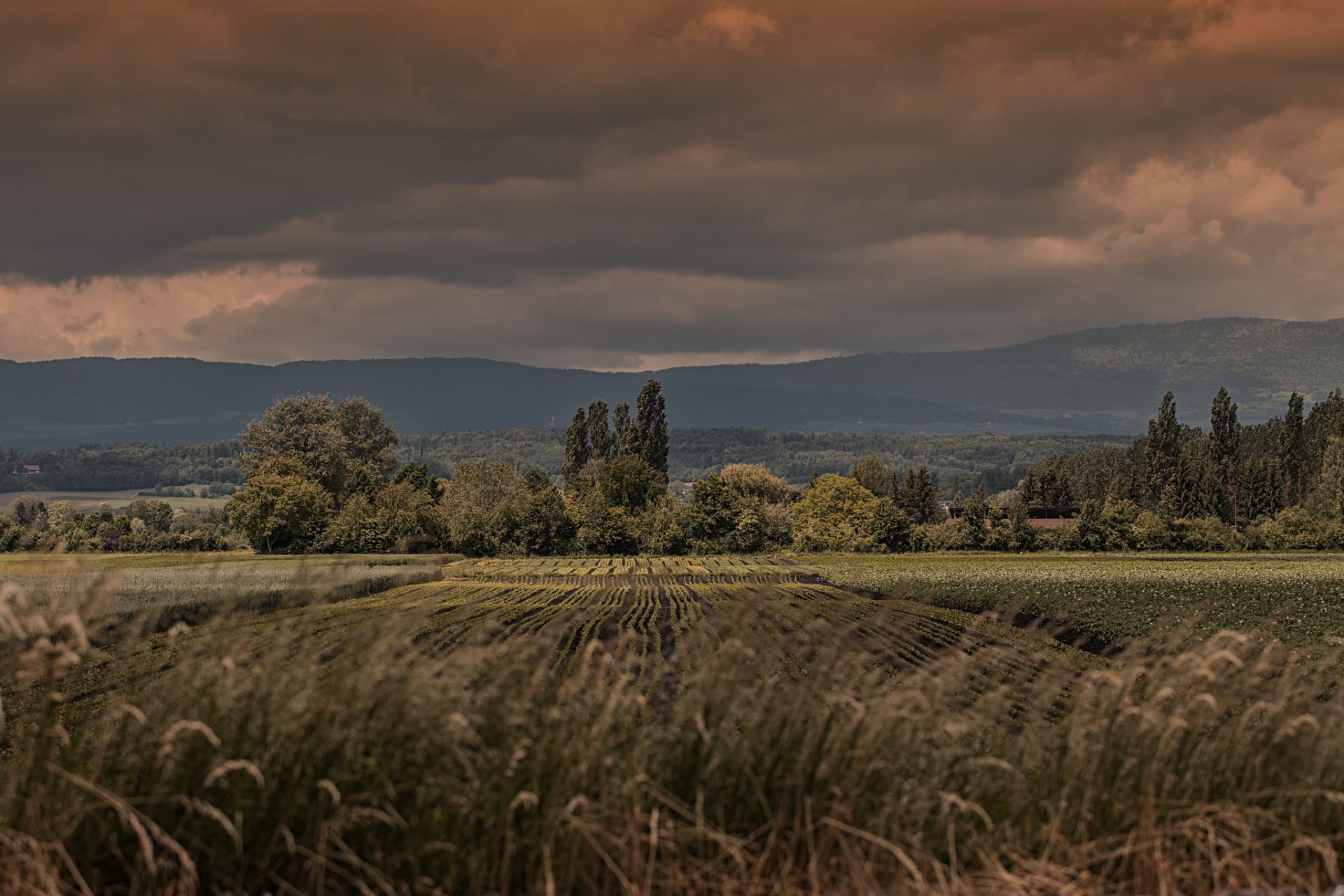 Meeresbank vor dem Hintergrund des Himmels und der Berge
