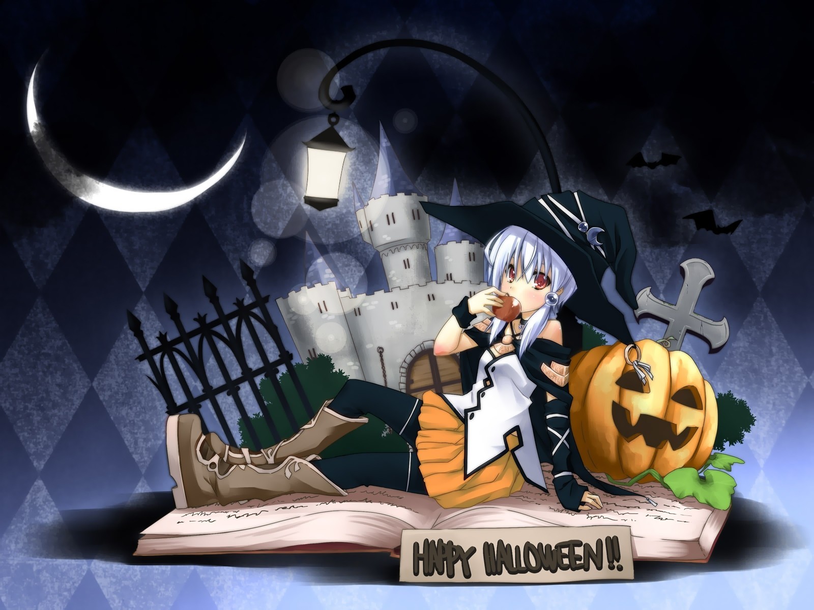 Ein mädchen im anime-stil sitzt neben einem kürbisEin Mädchen im Anime-Stil sitzt neben einem Kürbis