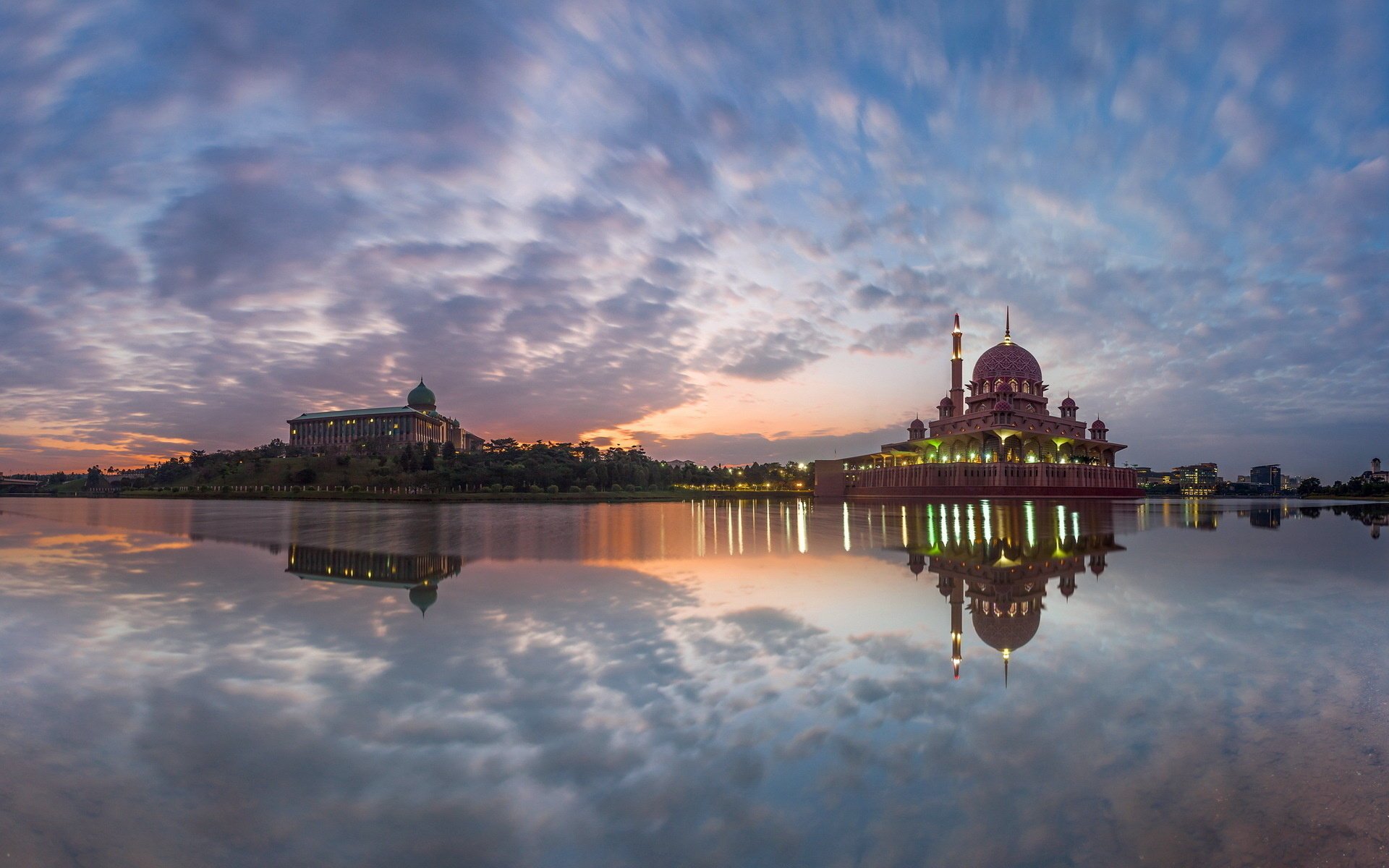 Reflexion der wolken im wasser bei sonnenuntergang in der stadtReflexion der Wolken im Wasser bei Sonnenuntergang in der Stadt