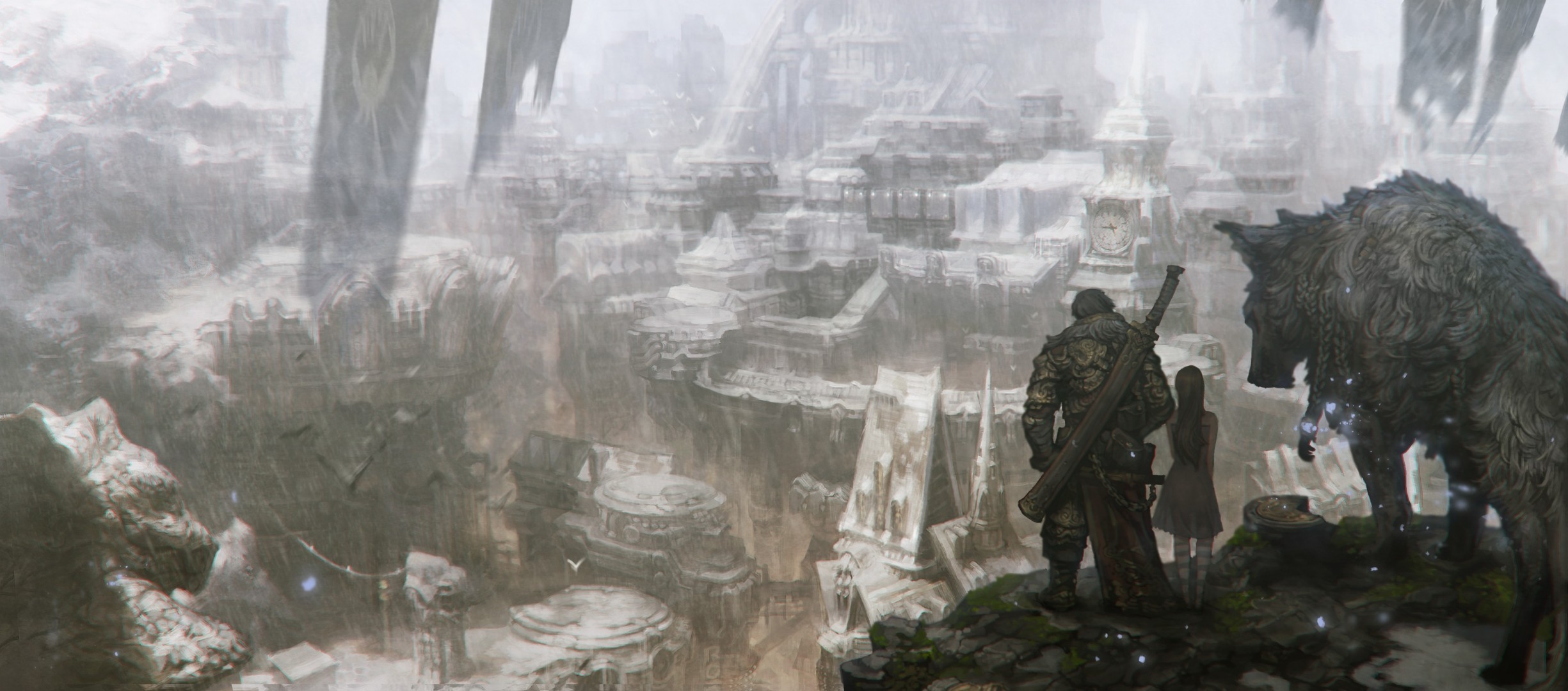 Eine Stadt im Nebel und im Frost in Großbritannien
