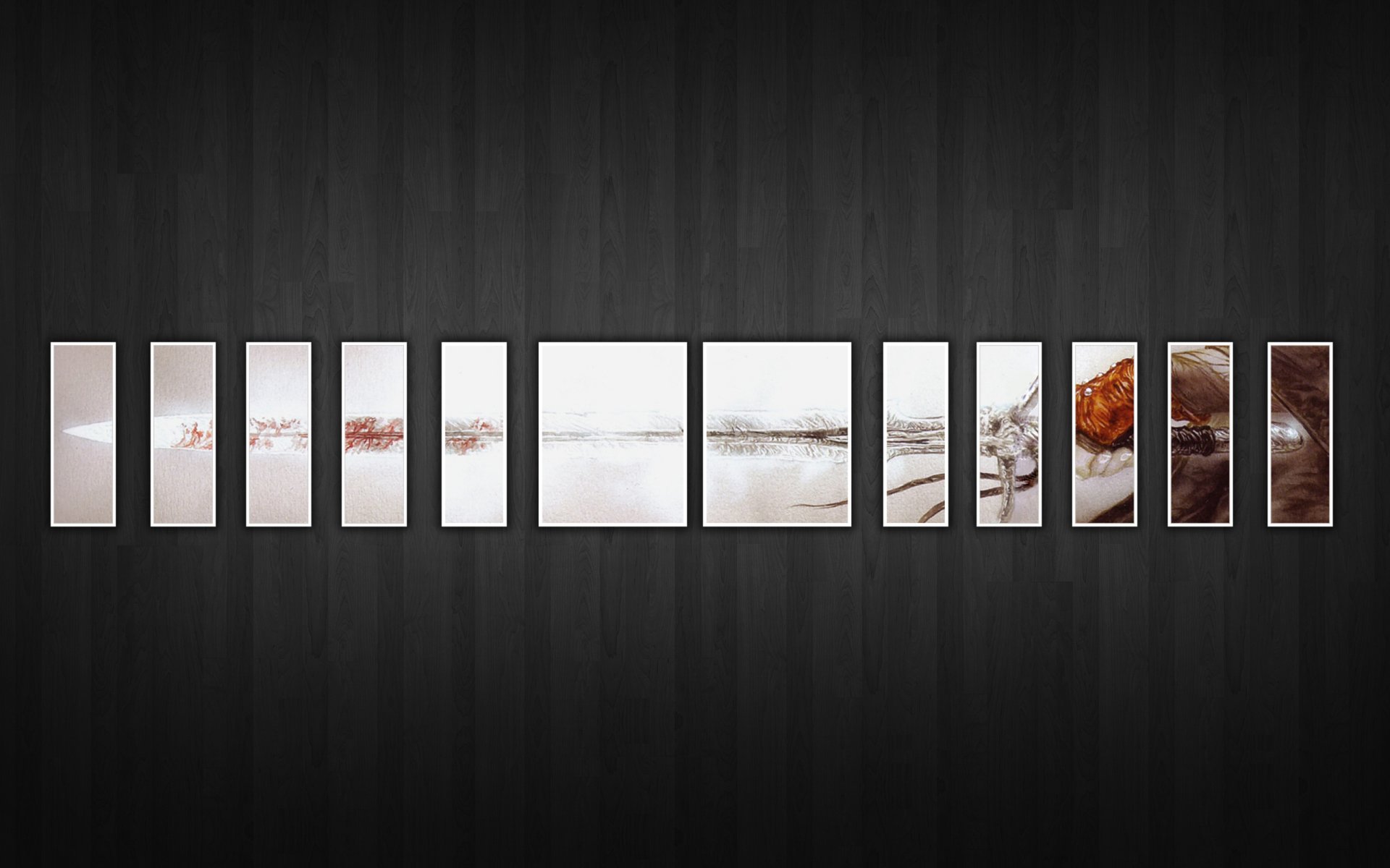 Blaues Sofa und Rahmen ohne Gemälde an der Wand