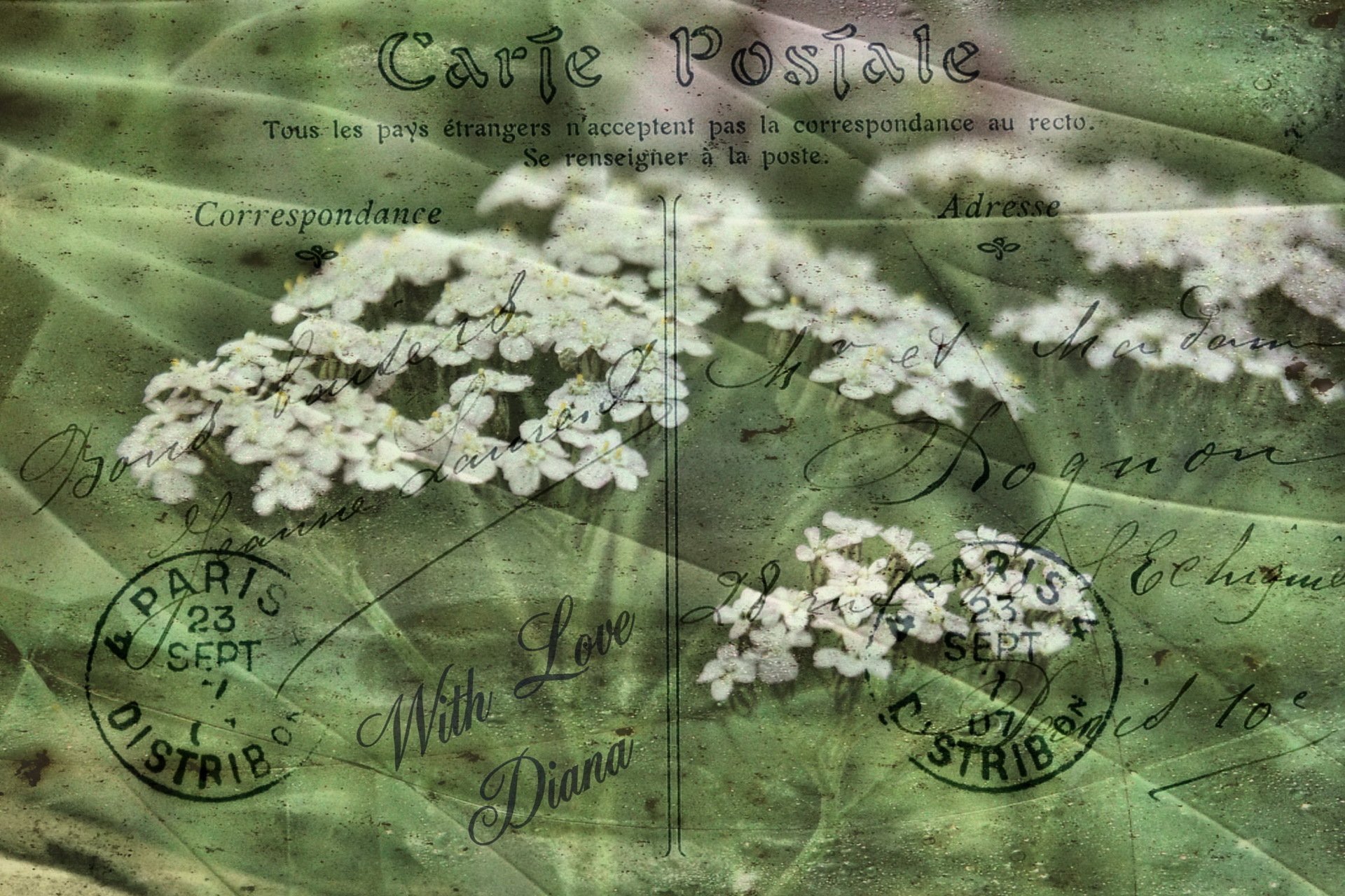 Stilvolle Grußkarte mit weißen Blumen Hintergrund