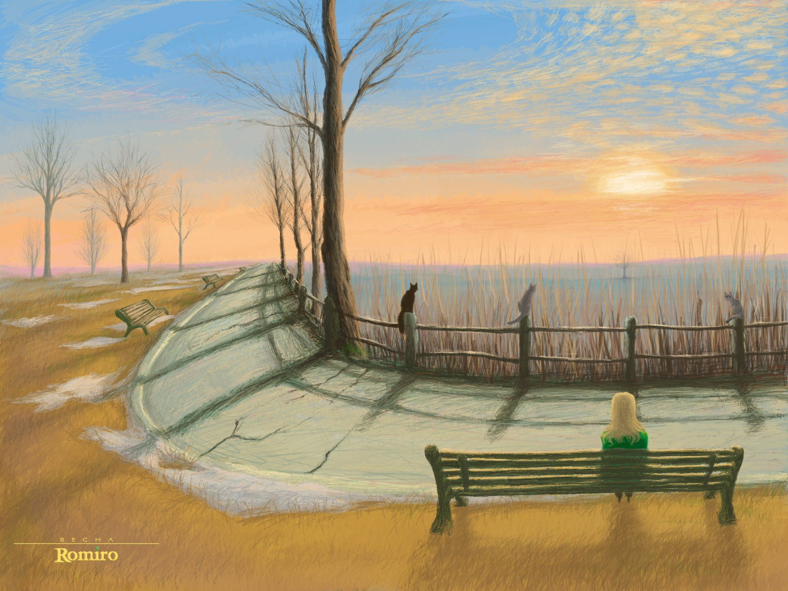 Mädchen sitzt auf einer bank in den strahlen des sonnenuntergangsMädchen sitzt auf einer Bank in den Strahlen des Sonnenuntergangs
