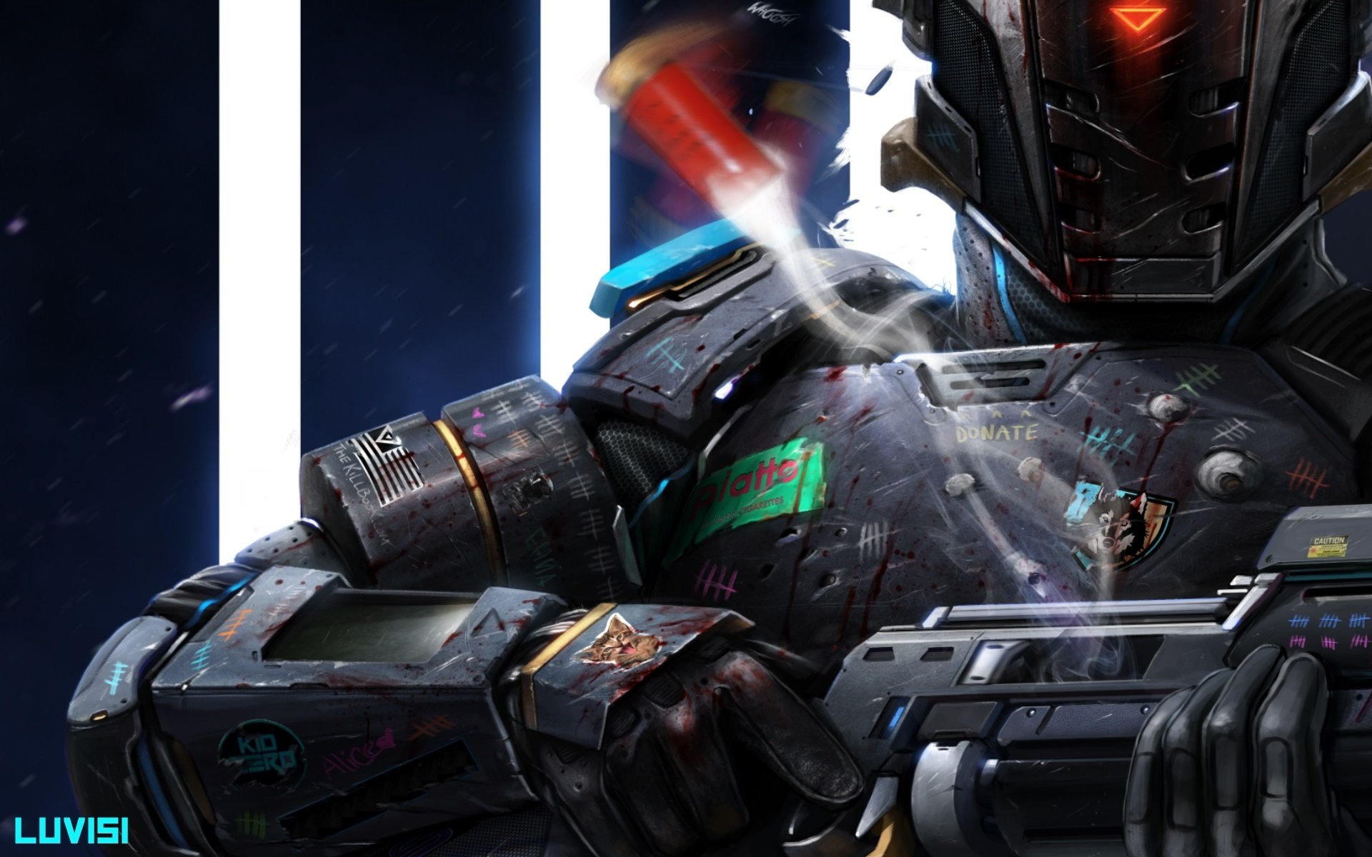 Bild mit einem soldaten in rüstung und mit einem laservisier