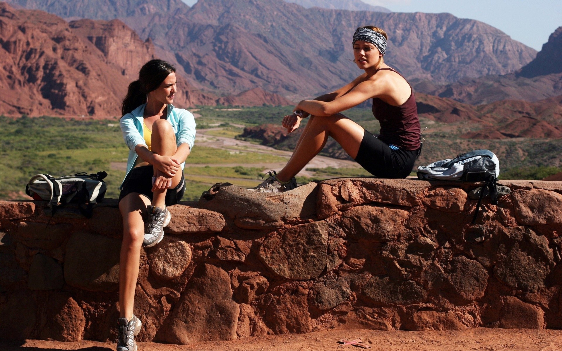 Die beiden mädchen setzten sich zur ruhe auf die steine. ein ausschnitt aus dem filmDie beiden Mädchen setzten sich zur Ruhe auf die Steine. ein Ausschnitt aus dem Film