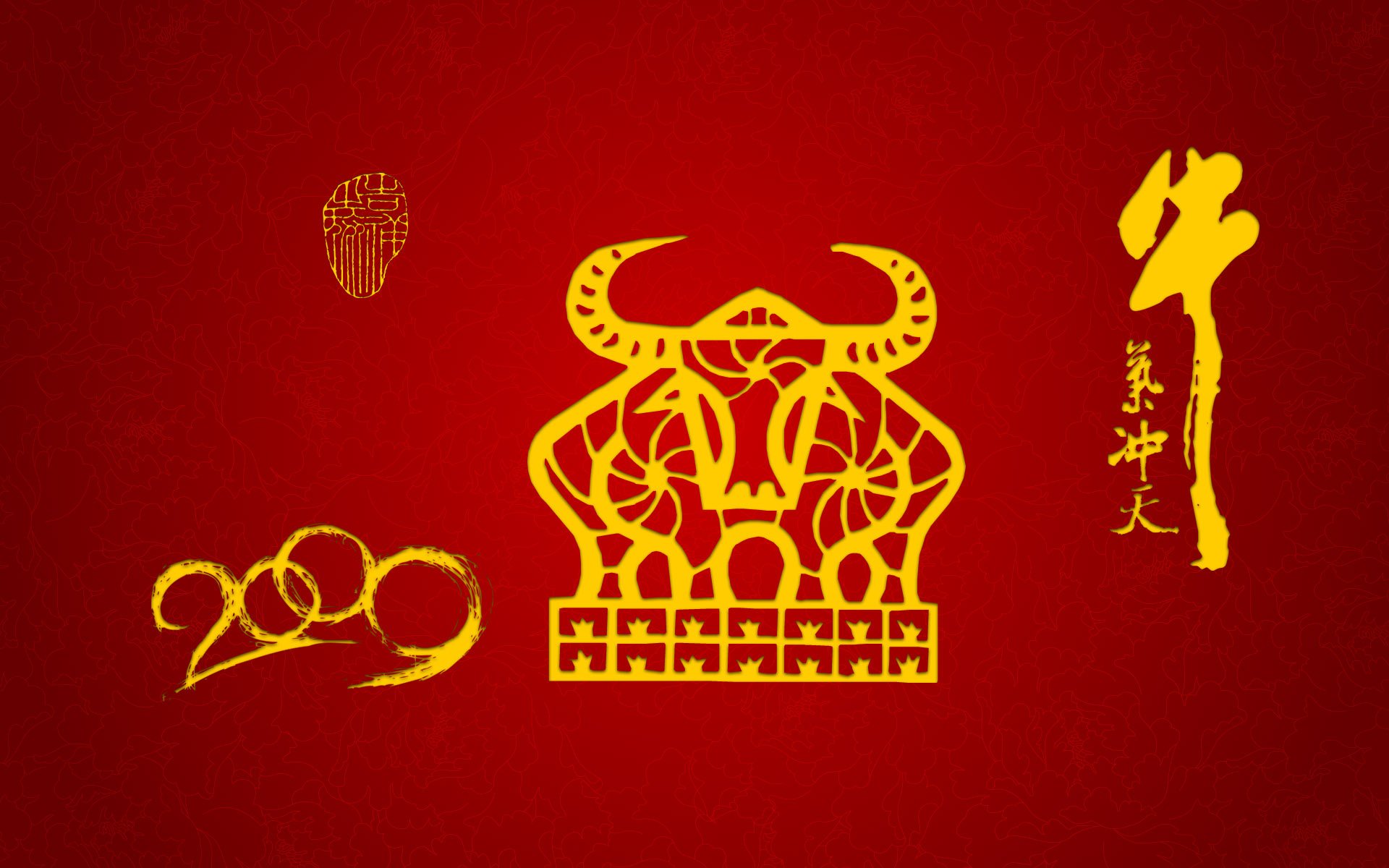 Gelbes Klrow-Symbol des Jahres auf rotem Hintergrund