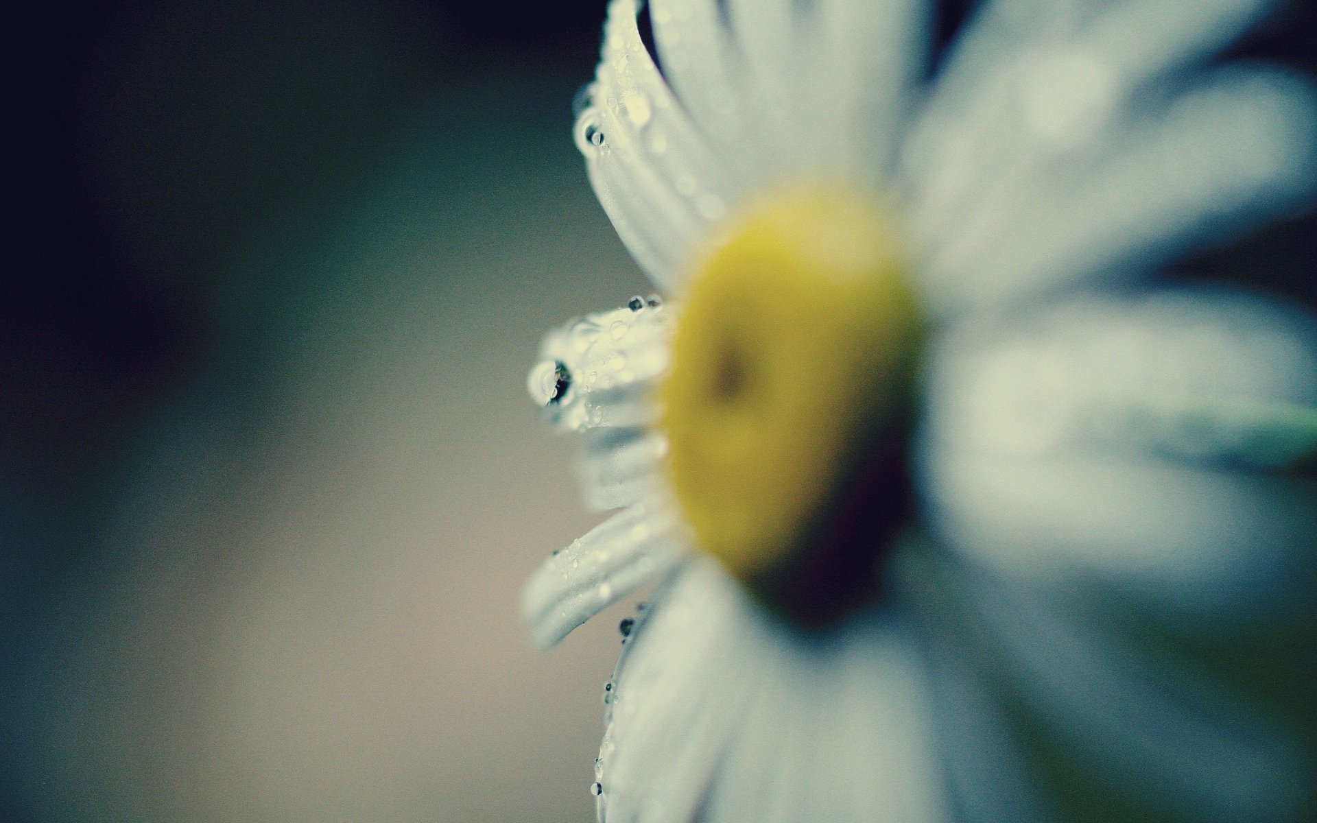 Makrobild eines Wassertropfen auf einem Blütenblatt einer blauen Blume