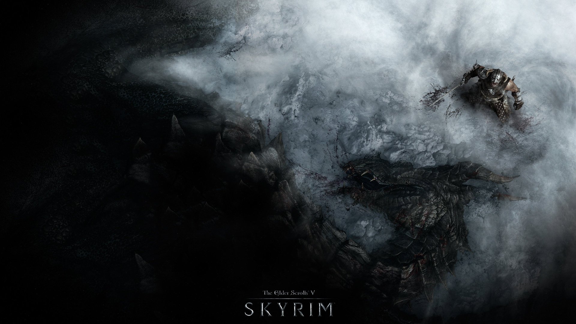 Gezeichneter rahmen mit einem drachen aus skyrim in den bergenGezeichneter Rahmen mit einem Drachen aus Skyrim in den Bergen