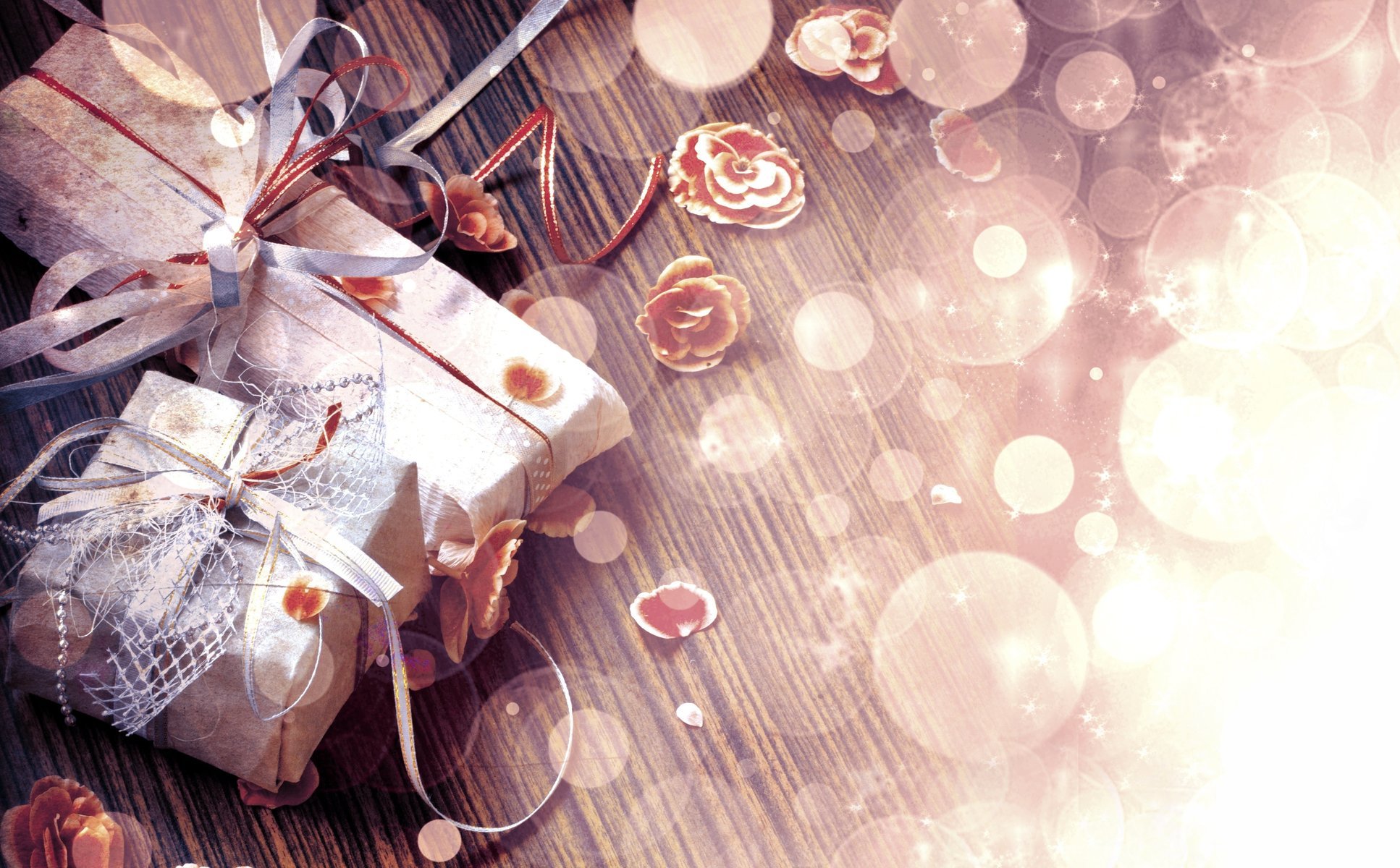 Zwei Geschenkboxen unterschiedlicher Größe unter Blumen
