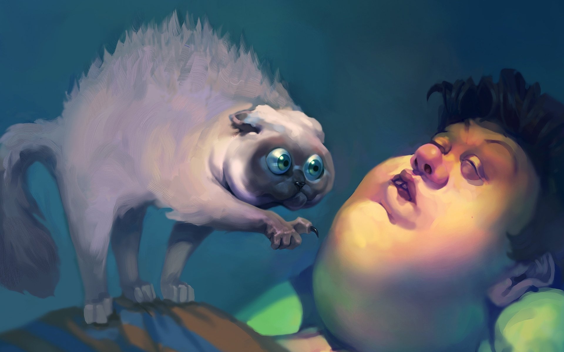 Das tier mit dem besitzer. ein mann mit einer katzeDas Tier mit dem Besitzer. Ein Mann mit einer Katze
