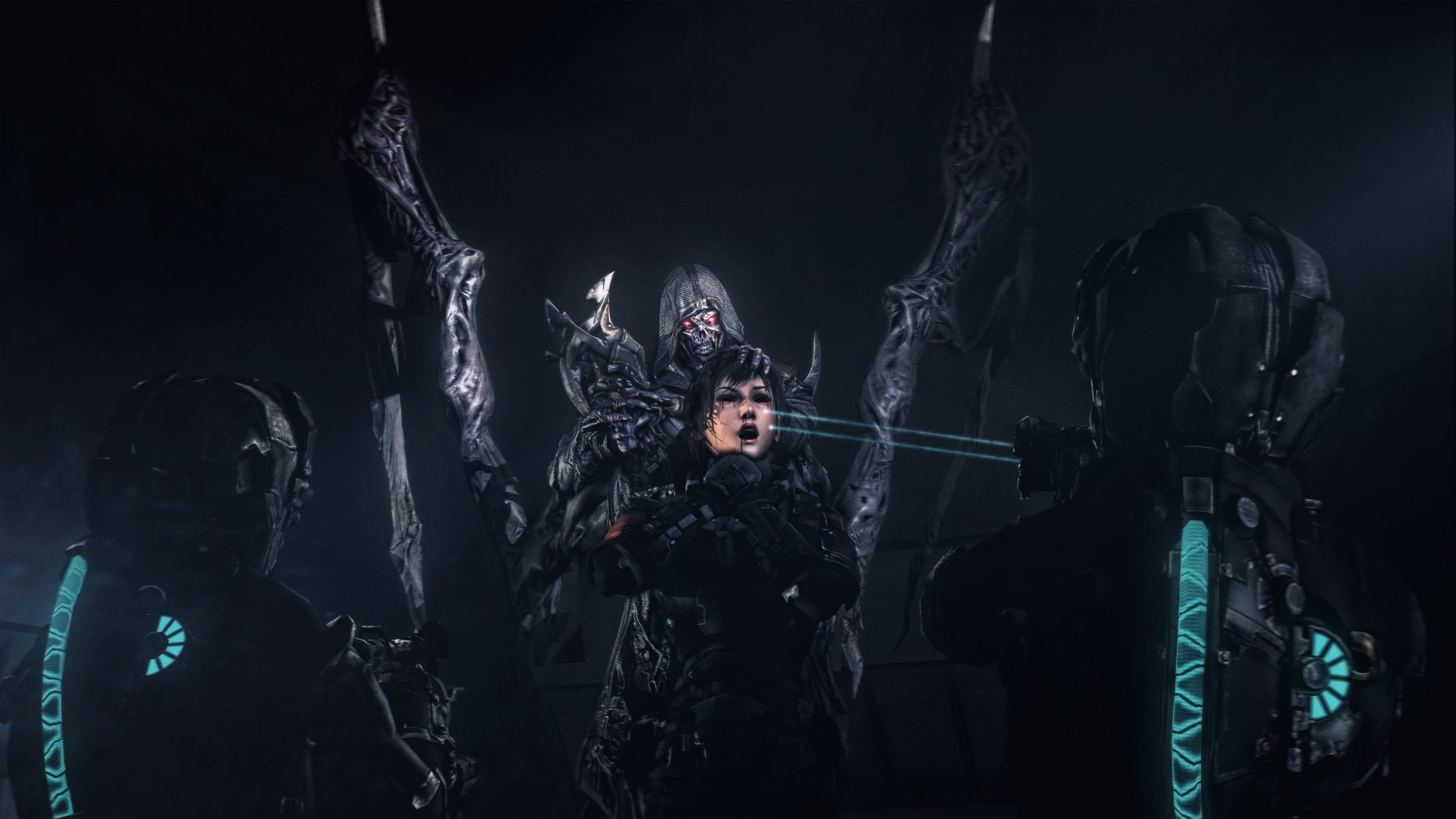 Team von Kämpfern mit Waffen in der U-Bahn