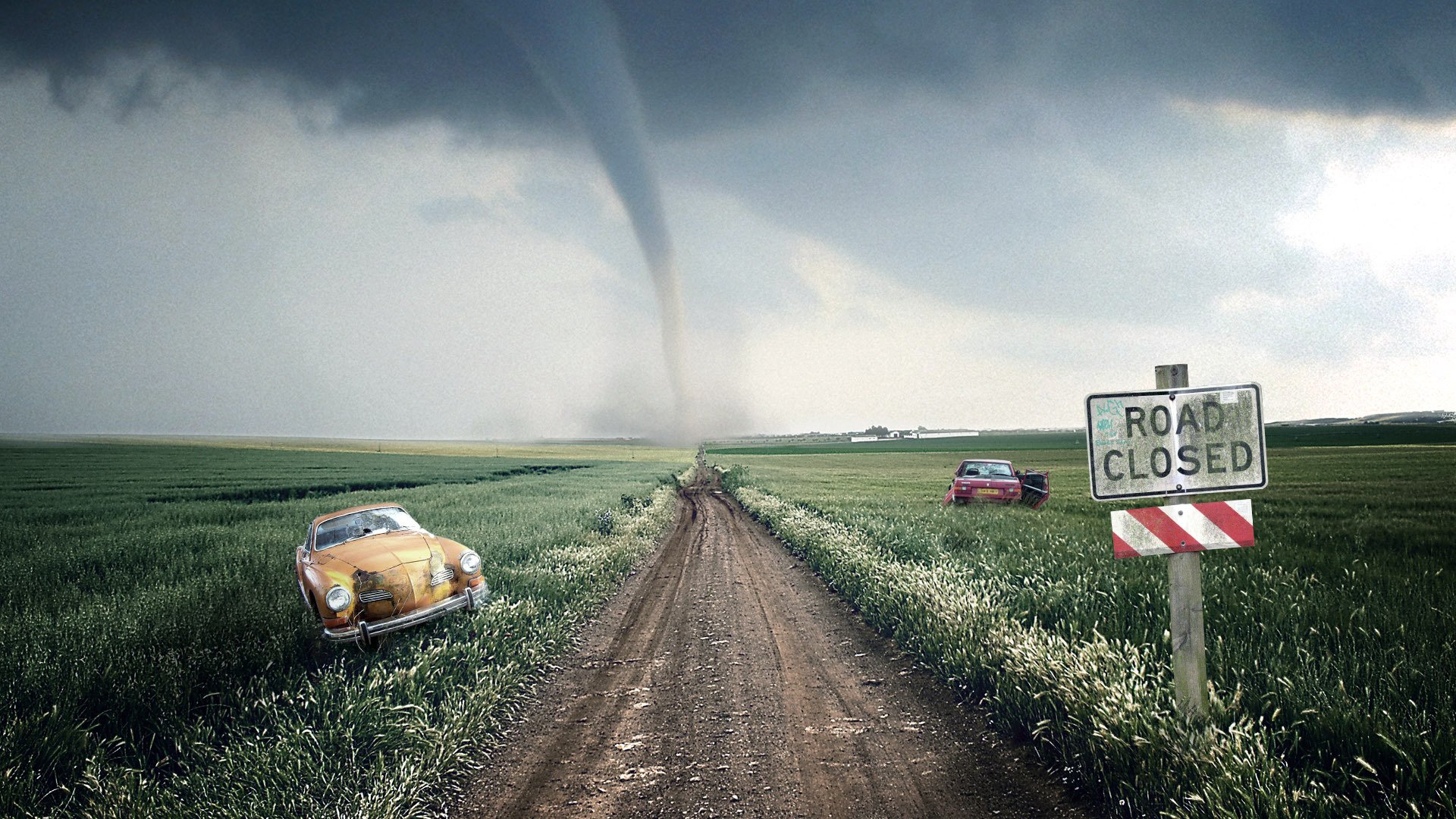 Ein schrecklicher tornado auf einer verlassenen straßeEin schrecklicher Tornado auf einer verlassenen Straße