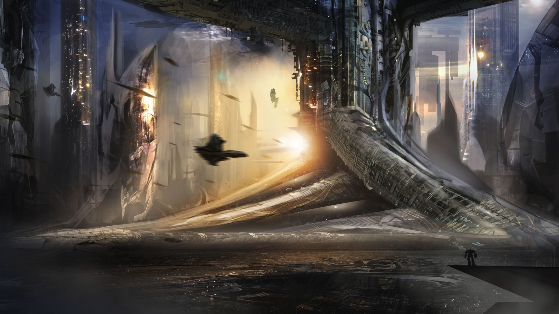 Bild des schiffes und der boote, die in die stadt folgenBild des Schiffes und der Boote, die in die Stadt folgen