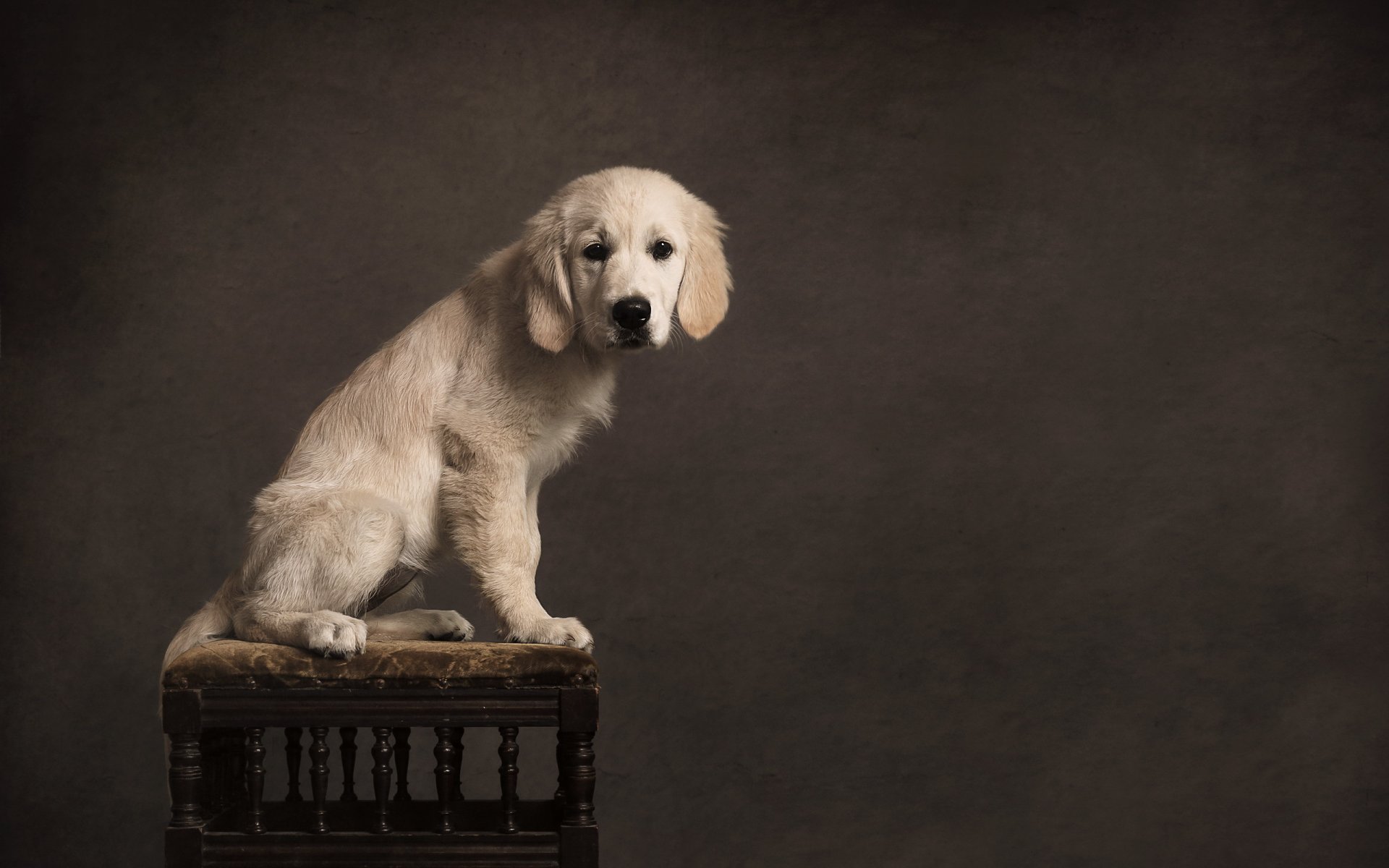 Trauriger blick eines welpen, der einen freund suchtTrauriger Blick eines Welpen, der einen Freund sucht