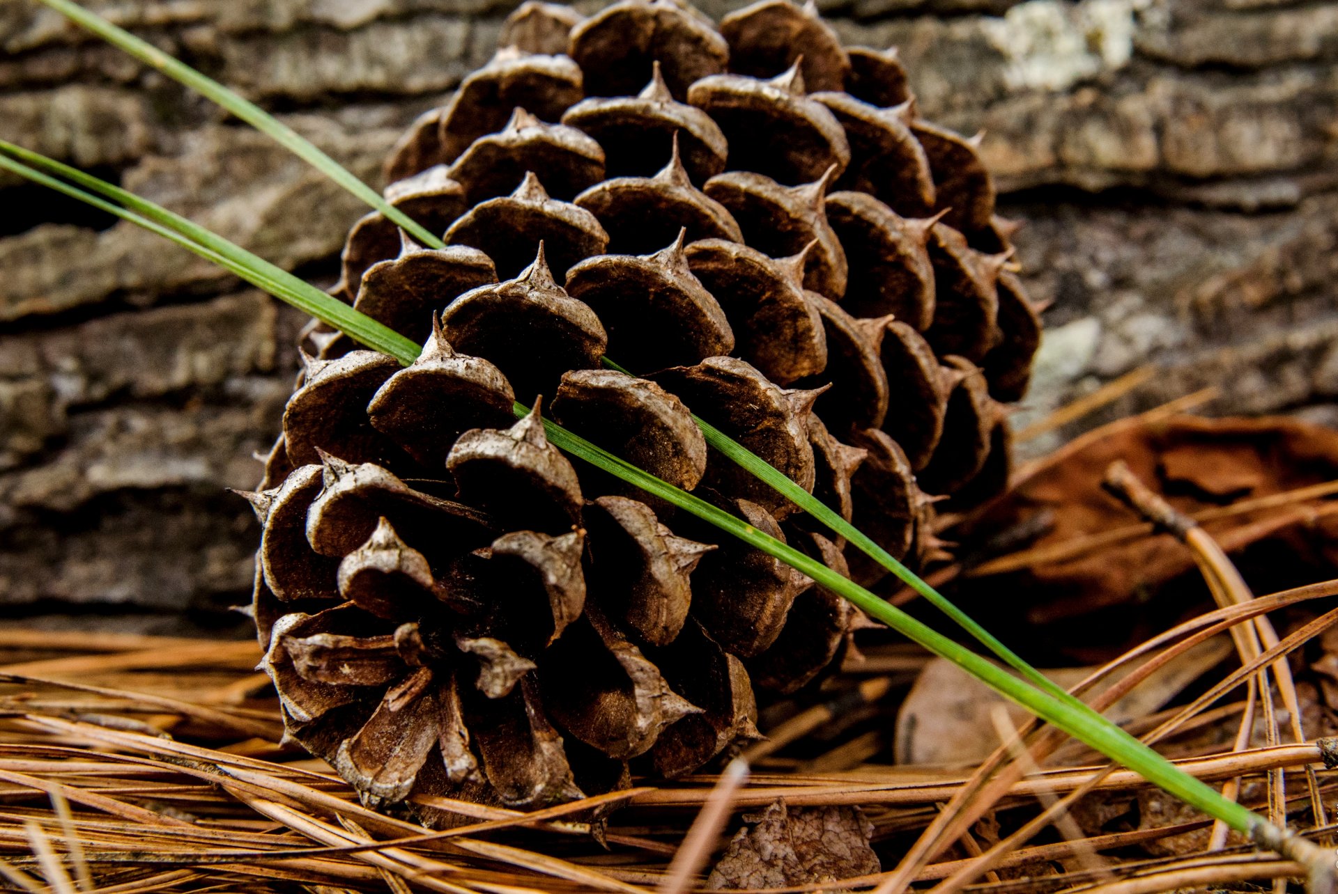 Gishka auf Kiefernnadeln im Gras