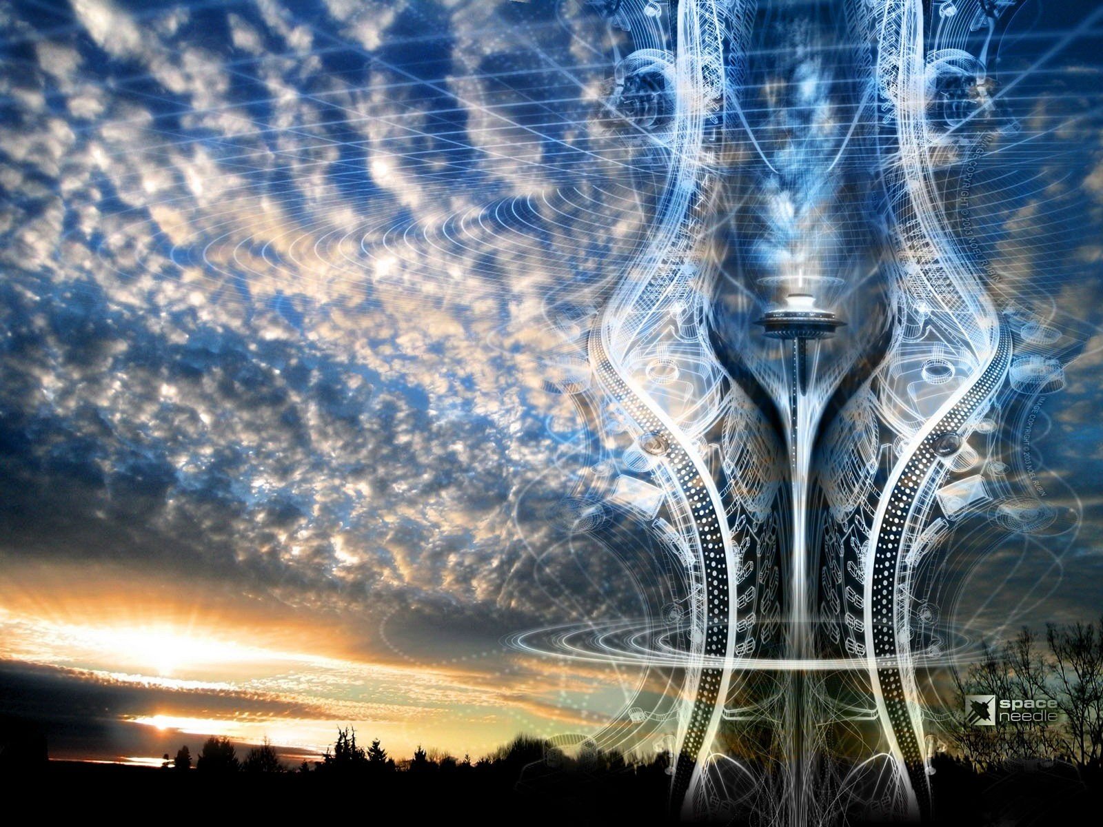 Illusion eines colleidoskops auf einem bewölkten himmelshintergrundIllusion eines Colleidoskops auf einem bewölkten Himmelshintergrund