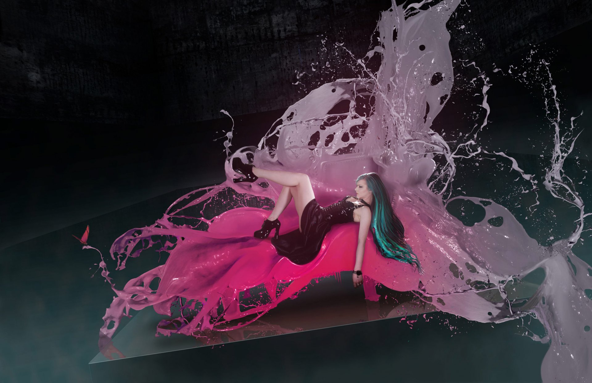 Mädchen-Modell in der Abstraktion in Form eines Schmetterlings