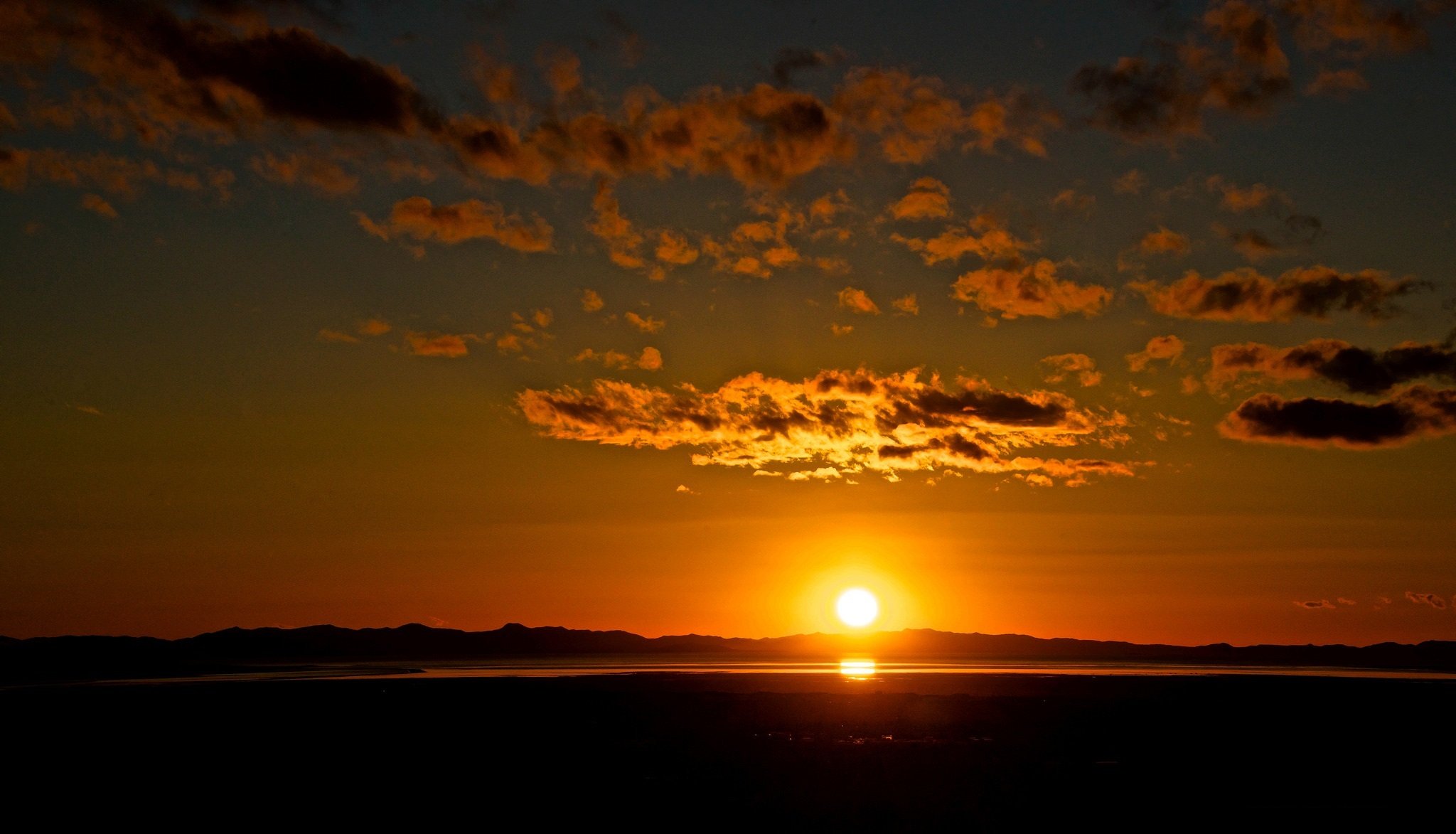 Sonnenuntergang am See. Wolken, orange Sonnenuntergang