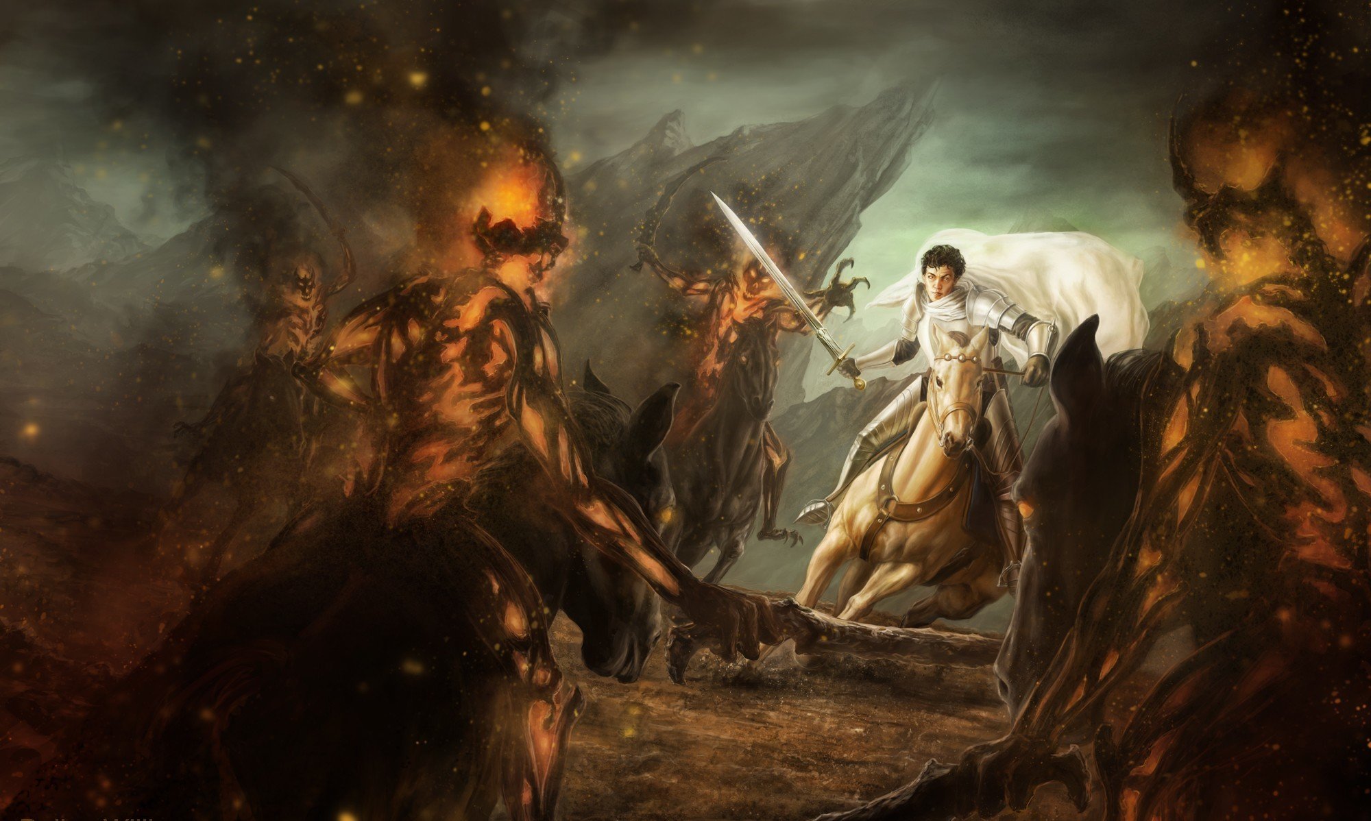 Ein krieger mit einer pistole kämpft gegen ein monsterEin Krieger mit einer Pistole kämpft gegen ein Monster