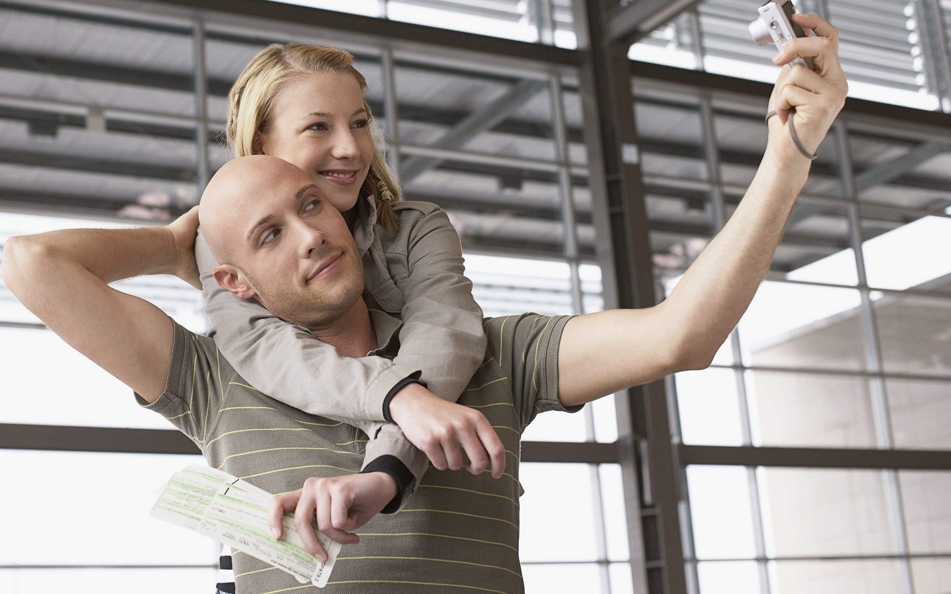 Schönes paar in einer Umarmung posiert vor der Kamera