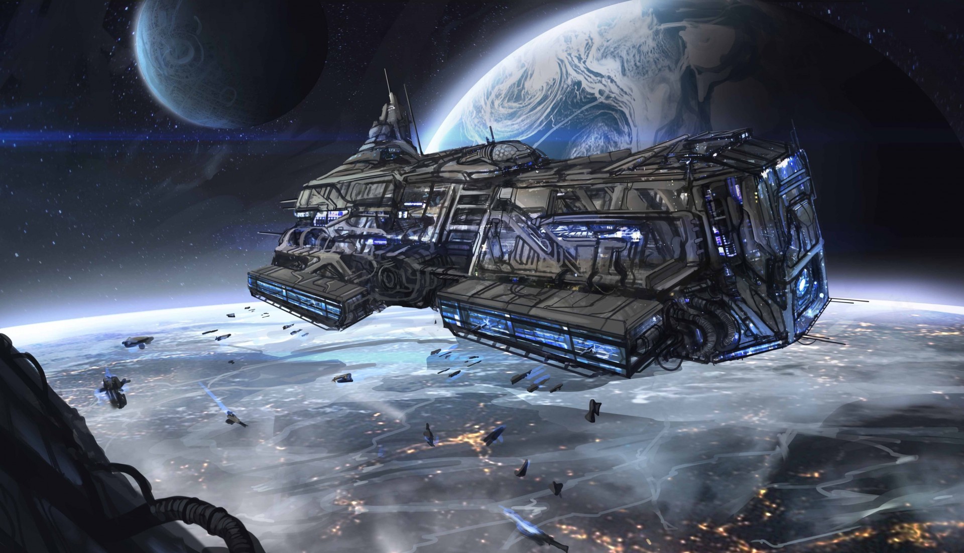 Raum Stadt Schiffe in der Schwerelosigkeit