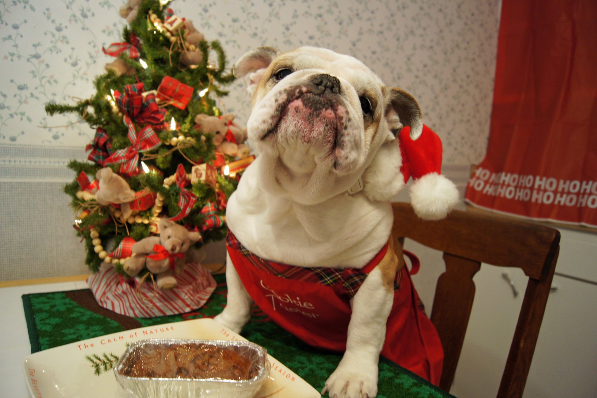 Der Hund mit der Kappe von Santa Claus