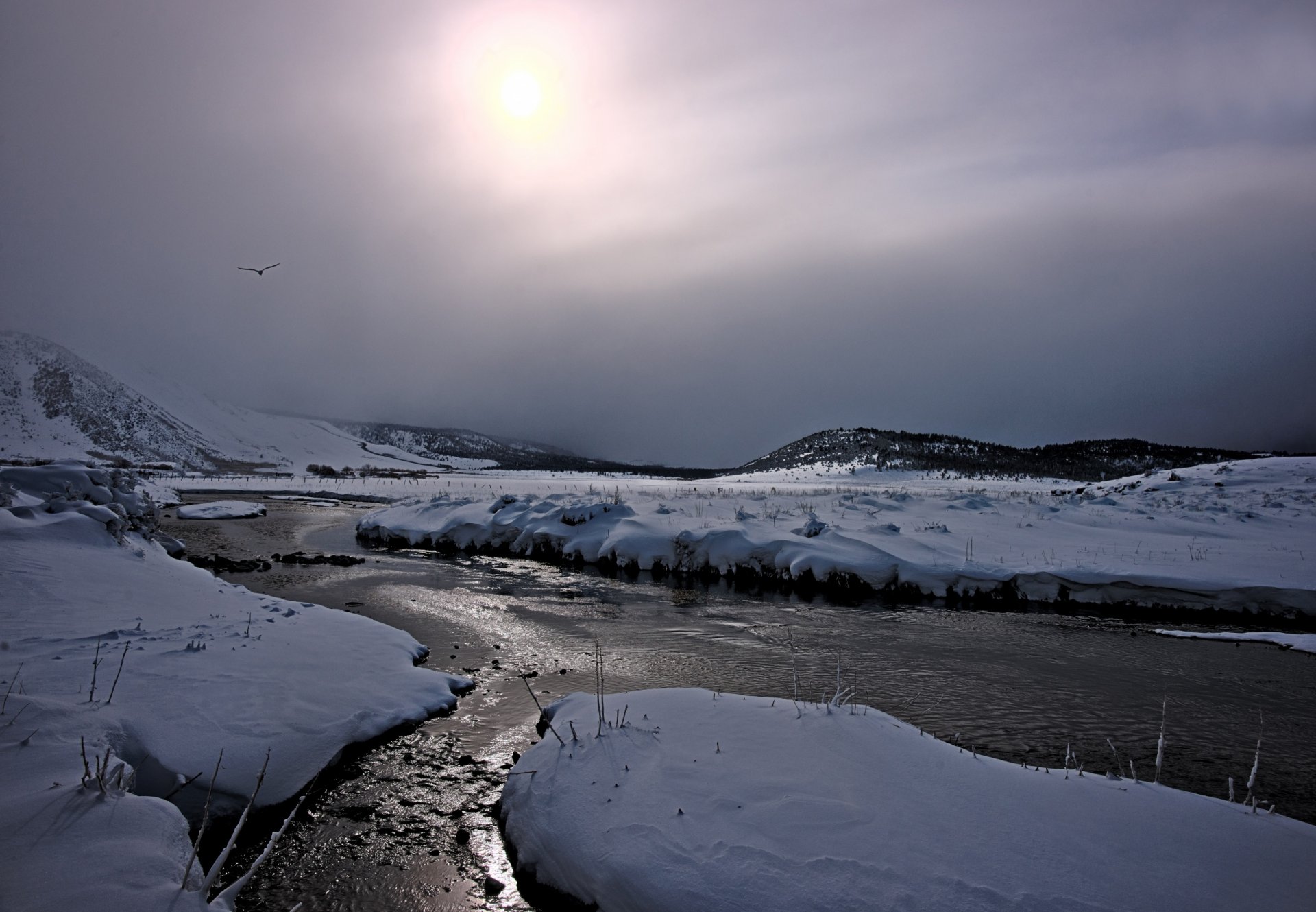 Frühlingsporen, schmelzender Schnee, Bäche fließen