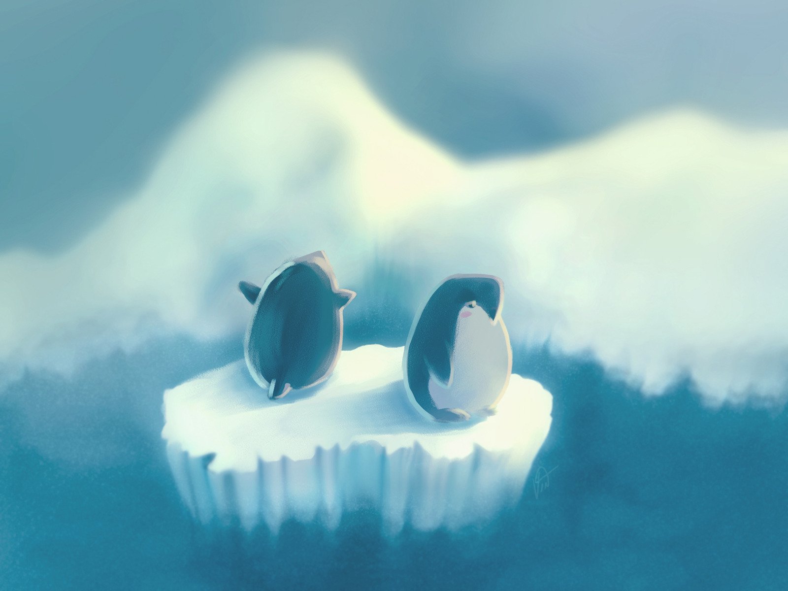 In der abbildung haben sich zwei pinguine auf einer eisdiele niedergelassenIn der Abbildung haben sich zwei Pinguine auf einer Eisdiele niedergelassen