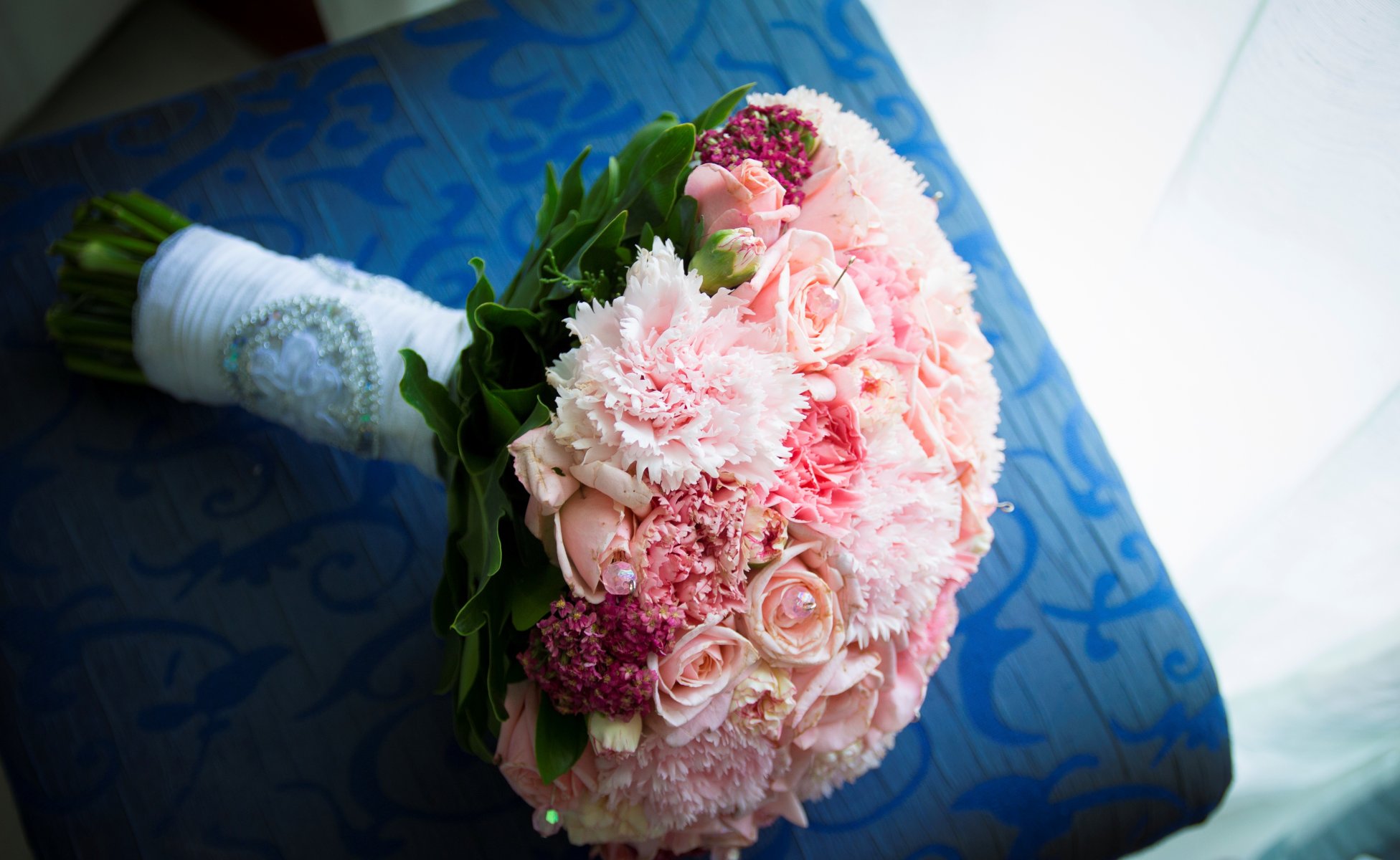 Hochzeitsringe auf weißem Hintergrund mit rosa Rosen