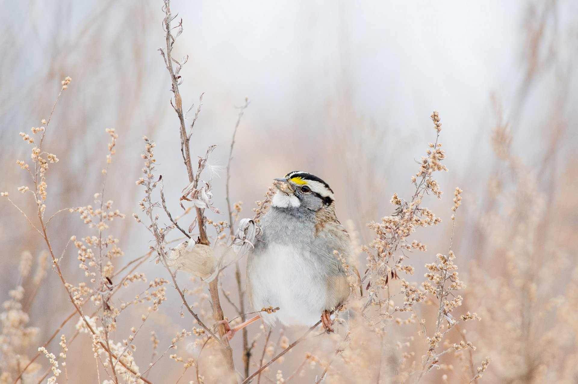Minimalismus Weißer Hintergrund und Vogel auf Draht