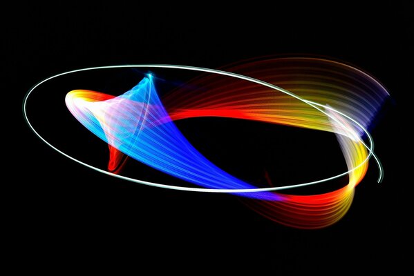 Regenbogenlinien, die die Form eines Schmetterlings auf schwarzem Hintergrund bilden