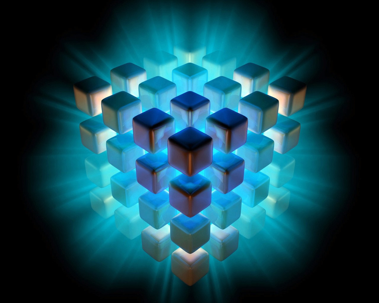 Würfel aus Stein, zu einer Pyramide gefaltet