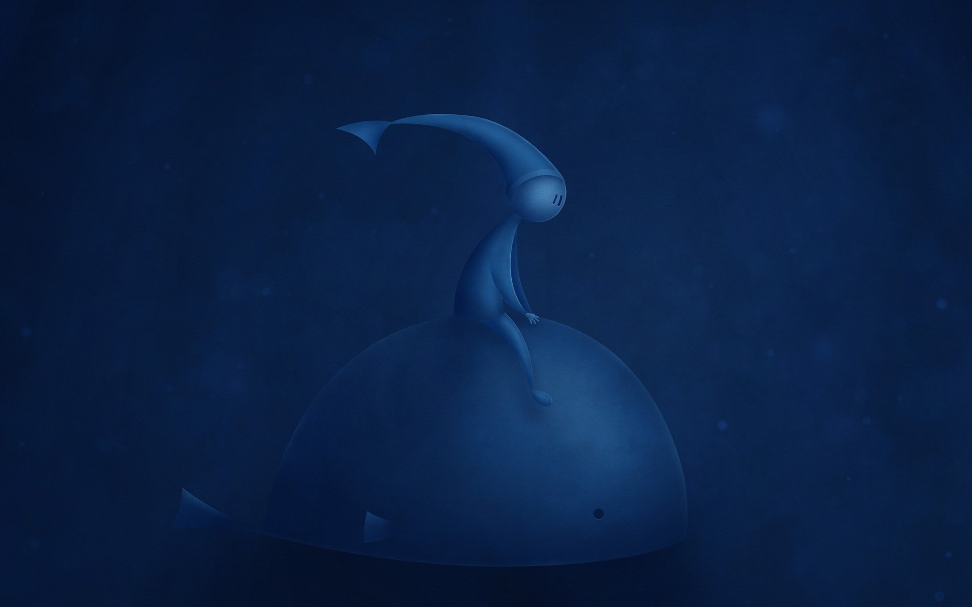 Ein blauer Wal mit einem Mann auf blauem Hintergrund