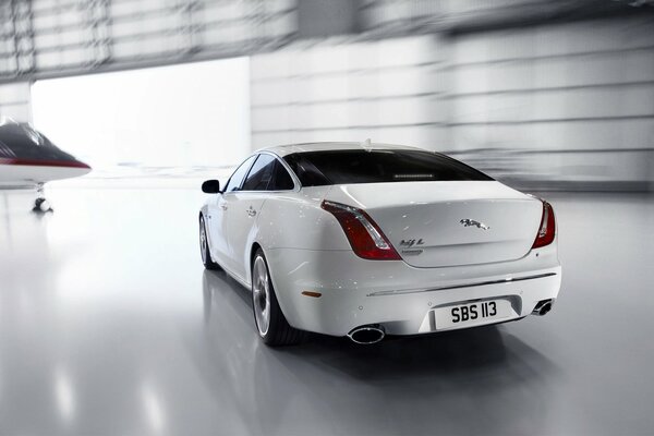 Weißer Lamborghini Tuning Sportwagen auf Wandhintergrund
