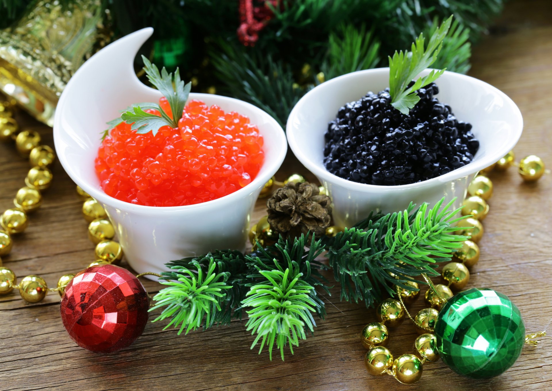 Neujahrs-stillleben mit rotem und schwarzem kaviarNeujahrs-Stillleben mit rotem und schwarzem Kaviar