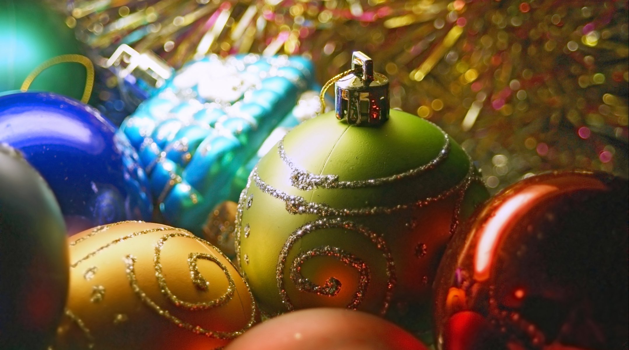 Weihnachtskugeln und Lametta des Neujahrs
