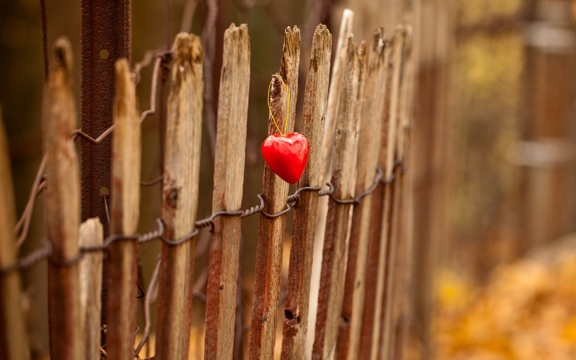 Herz auf dem zaun in den strahlen der untergehenden sonneHerz auf dem Zaun in den Strahlen der untergehenden Sonne