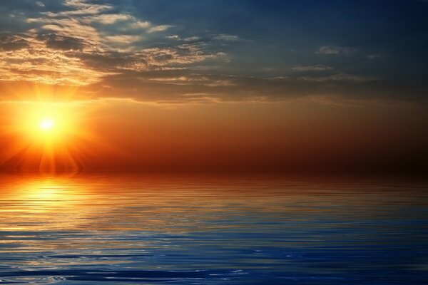 Faszinierender sonnenuntergang am horizont des meeresFaszinierender Sonnenuntergang am Horizont des Meeres
