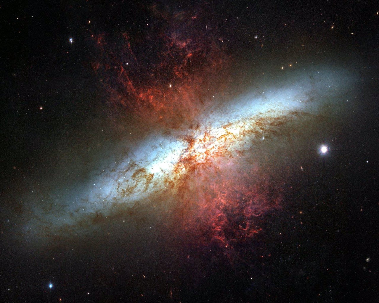Blaues und rotes nebelglühen in form eines drachen im weltraumBlaues und rotes Nebelglühen in Form eines Drachen im Weltraum