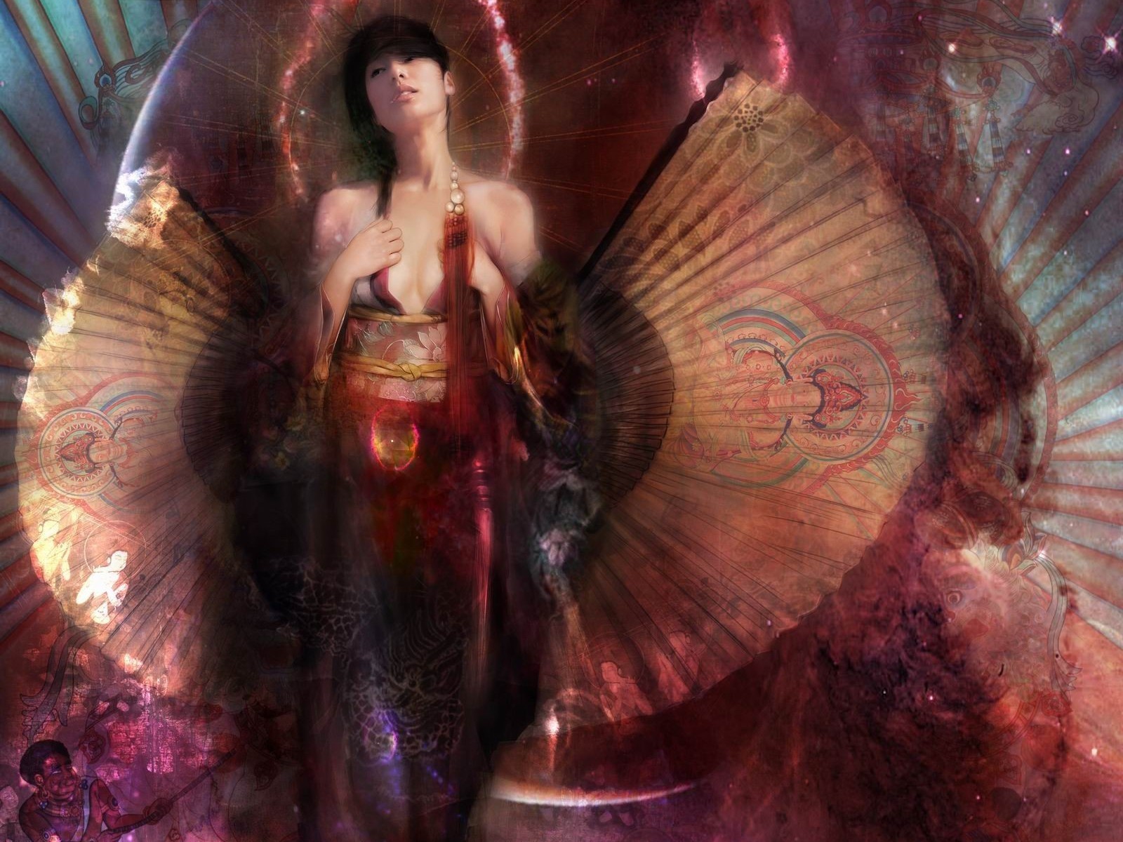 Asiatische Mädchen mit einem schönen Fächer